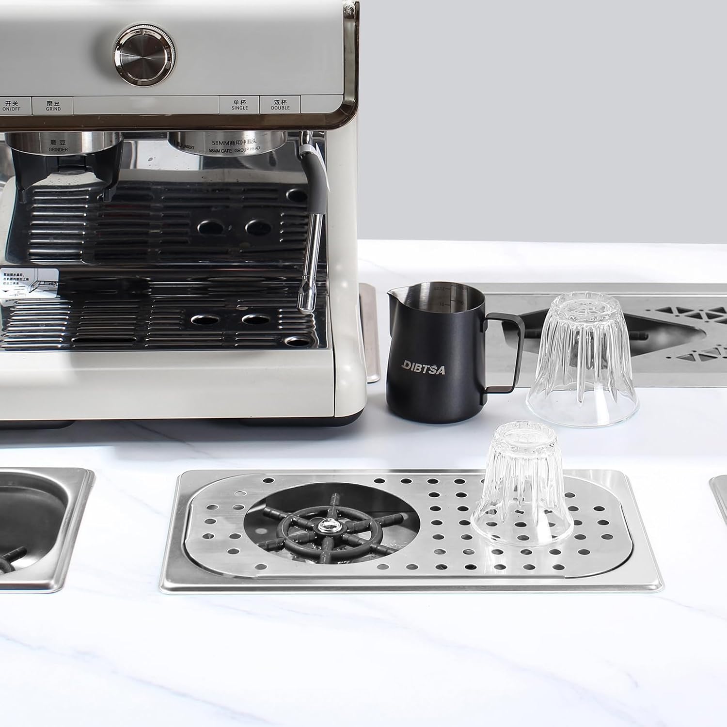 DIBTSA Pitcher Rinser, Espresso Rinser, Drain and Drip Tray, Stainless Steel Bar Glass Rinser for Sink, Cup Washer Spray Rinser for Home Kitchen Hotel Cafe Restaurant (12.8 x 6.9 x 0.9 inch,Silver)