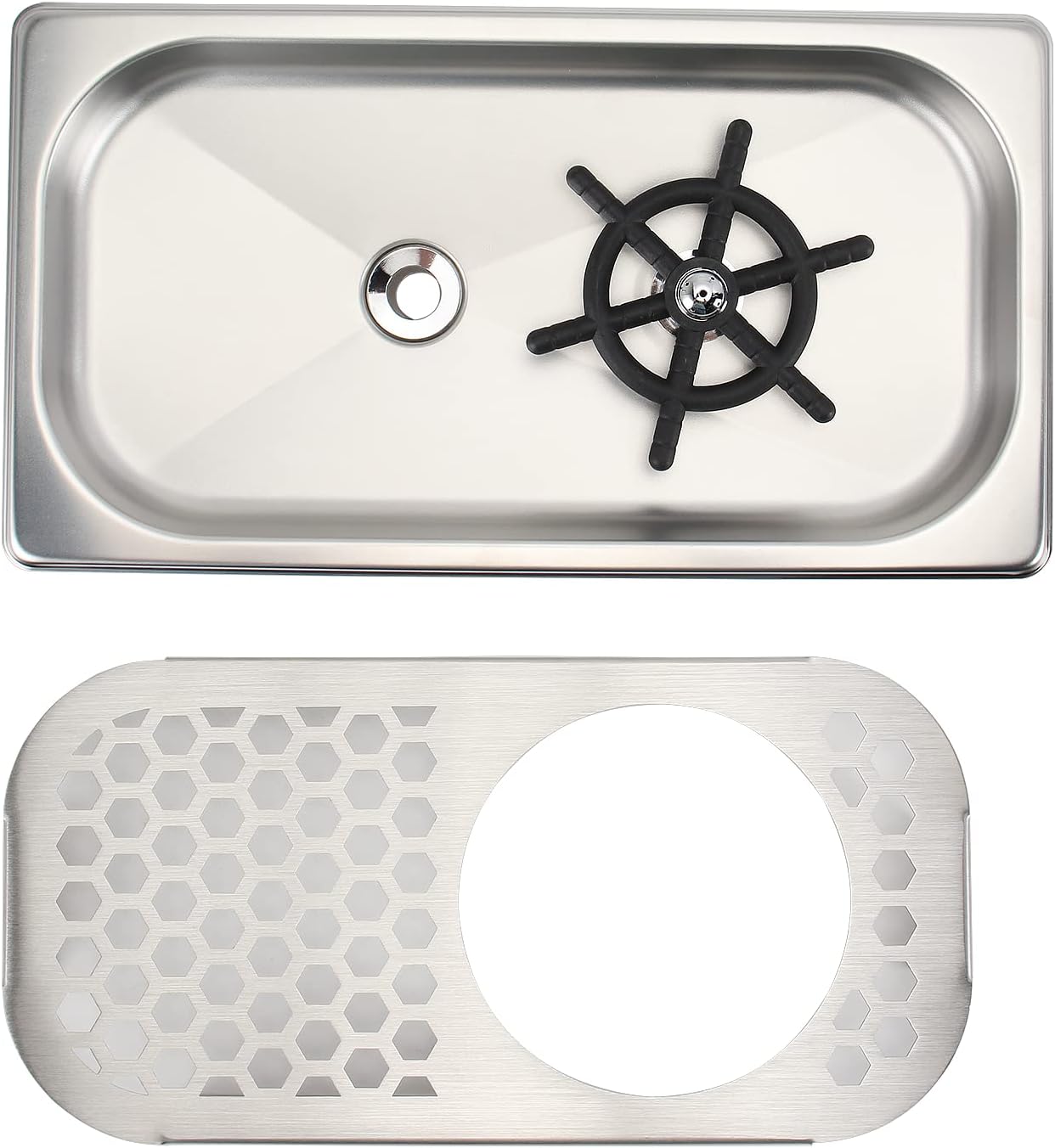 - Design: The water inlet and outlet are set to ensure that the dirty water is quickly drained out and keep the sink clean,The finely crafted stainless steel drip tray provides enough place for the cleaned cups to dry , not easy to rust and not easy to corrode.Equipped with two pieces braided hose inlet pipe
