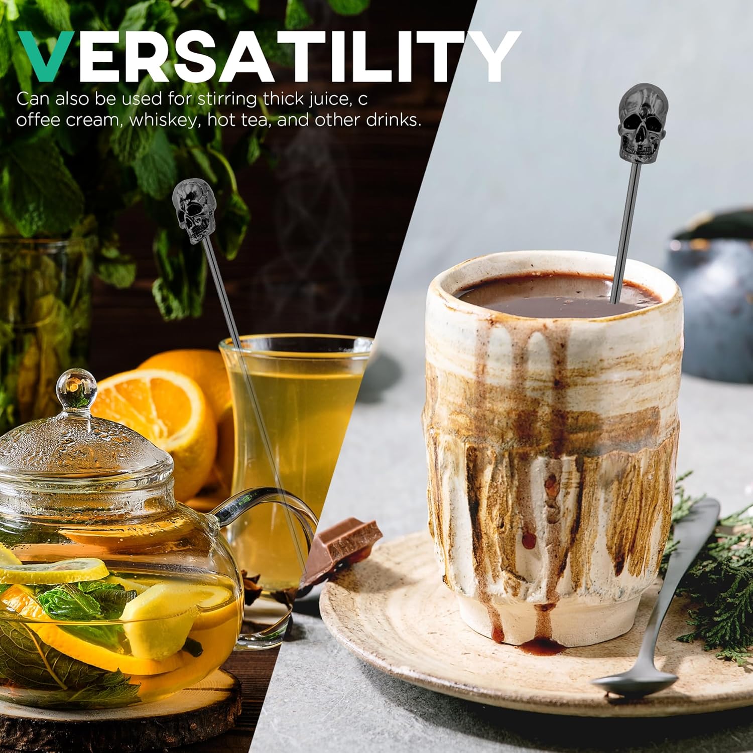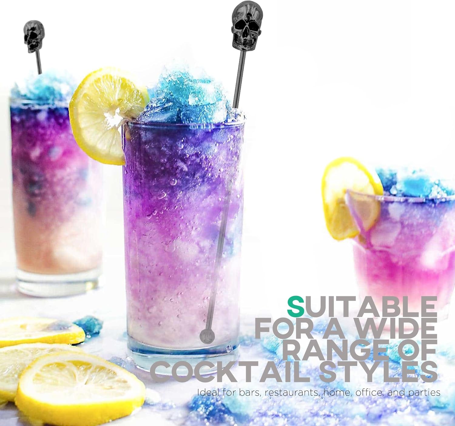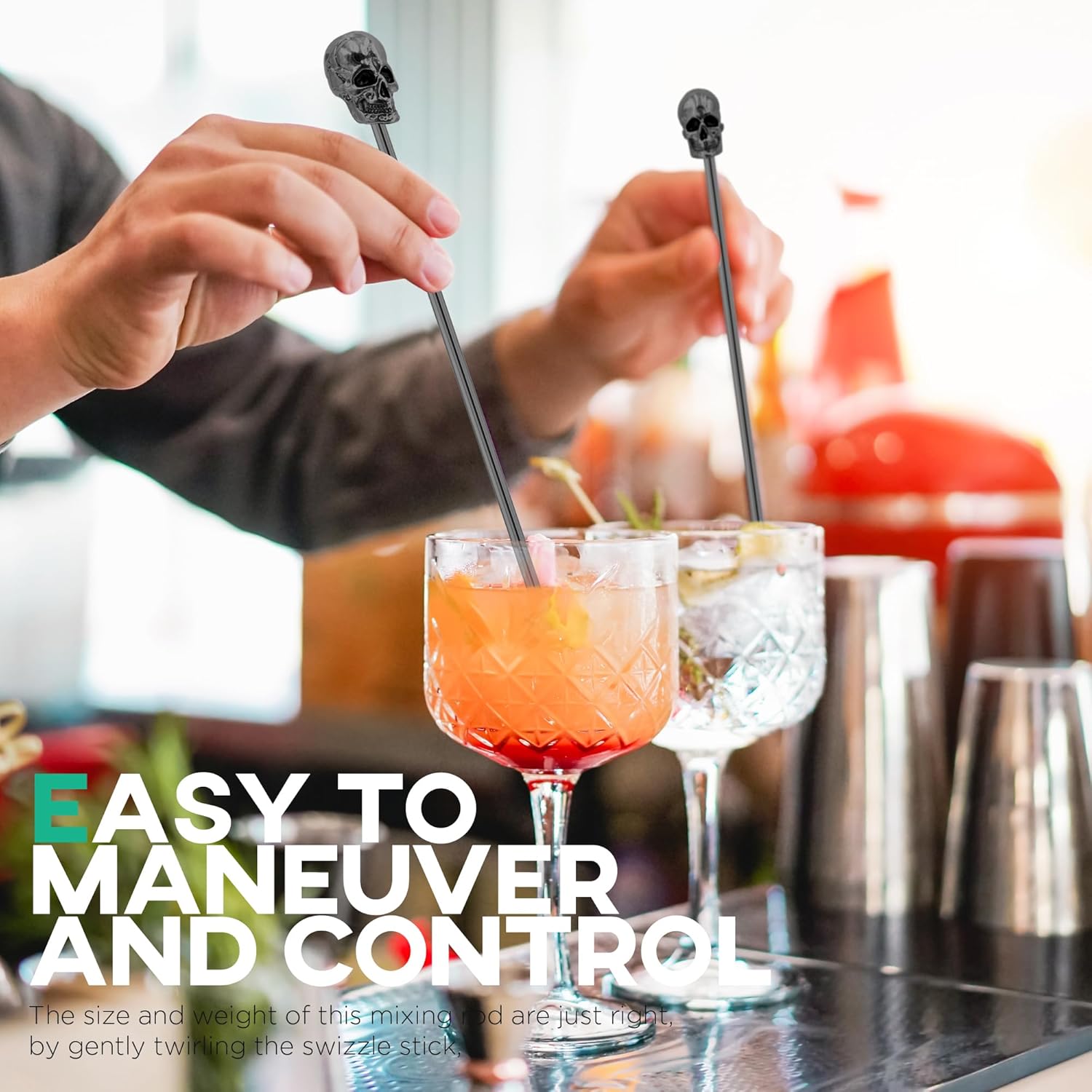 - DESIGN: The stirrer's head is adorned with a skull decoration, not only adds a touch of character to your barware but also serves as a functional handle, making it easy to maneuver and control the rod with precision.