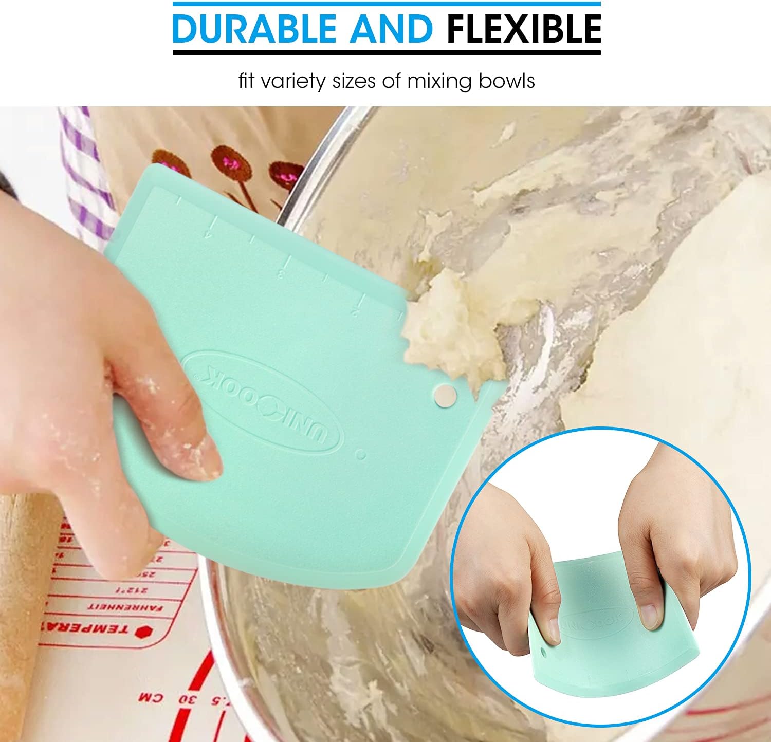 Unicook Dough Scraper, Flexible Bowl Scraper, Nonslip Bench Cutter with Measurement, Pastry Chopper, Multipurpose Kitchen Tool for Dough, Pastry, Pizza, Bread, Baking, Cake and More, 2 Pack