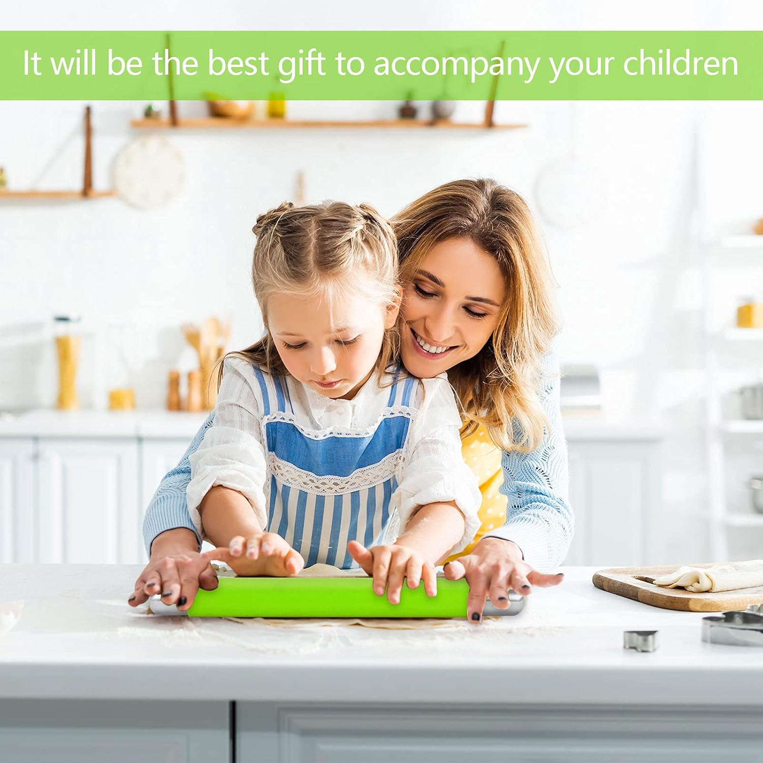 Rolling Pin Dough Roller for Baking with Thickened Non Stick Silicone Metal Handle Rolling Pin Stainless steel Fondant Roller Pin Cookie Pastry Kitchen Accessories 13.8 X 1.5 Inches