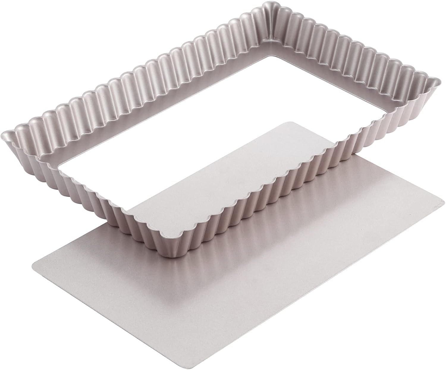 CHEFMADE Rectangle Tart Pan, 7x11-Inch with Removable Loose Bottom Non-Stick Oblong Quiche Bakeware for Oven Baking (Champagne Gold)