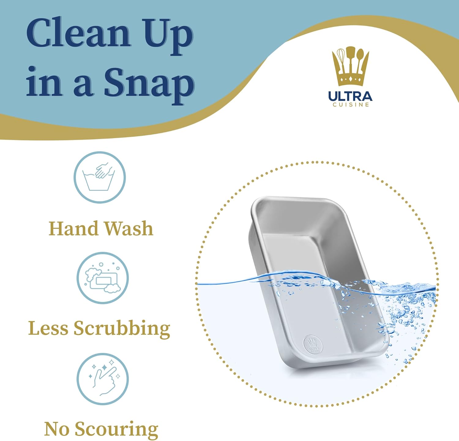 - EASY TO CLEAN: Spend less time scrubbing! Made for easy cleanup, hand wash our aluminum loaf pan easily without deep scrubbing or scouring. No worries if the product ends up in the dishwasher - if discoloration occurs, this is only cosmetic, and the baking properties and safety of the bread pan are not impacted.