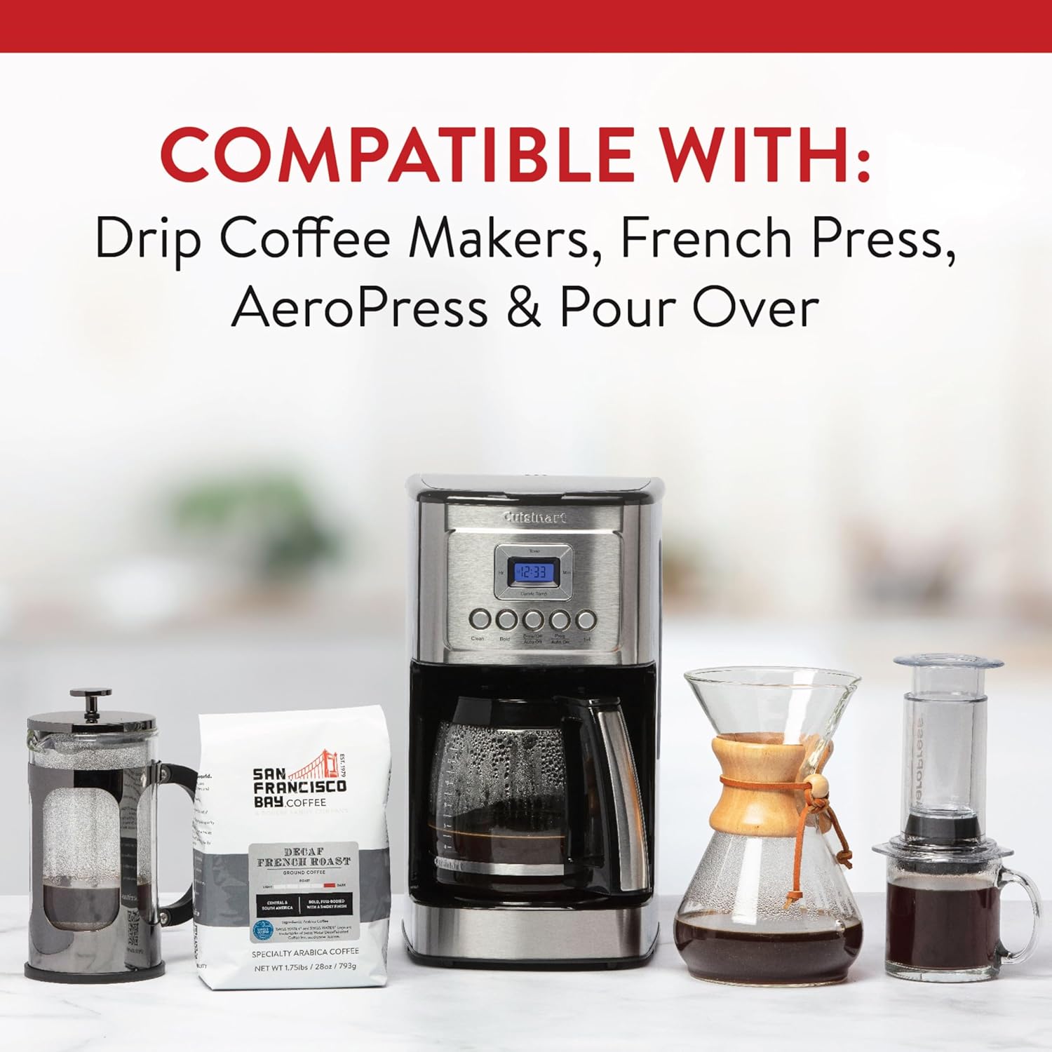San Francisco Bay Coffee Coffee DECAF French Roast Ground Coffee, 28 oz Bag, Dark Roast, Swiss Water Process Decaffeinated