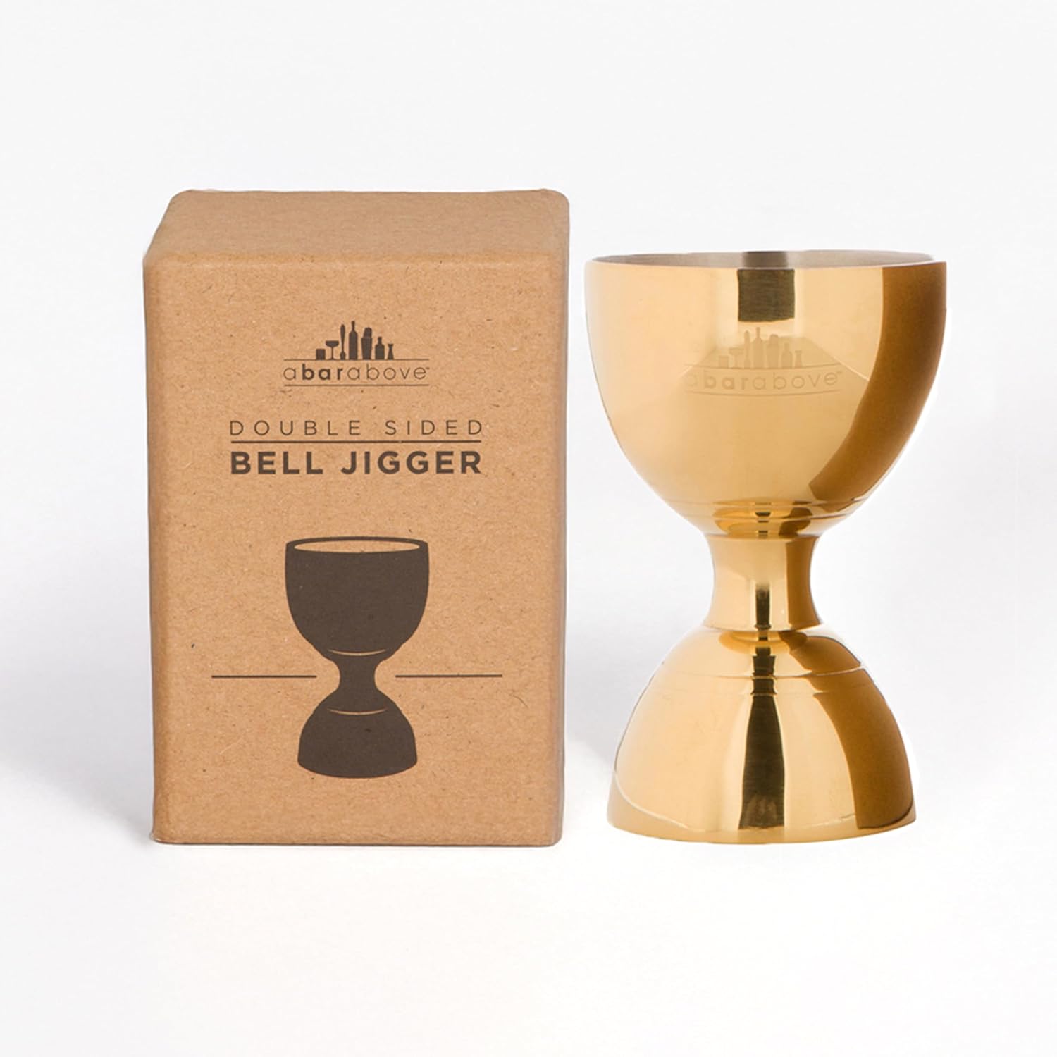 A Bar Above Premium Bell Jigger, 304 Stainless Steel Double Cocktail Jigger with 10 Internal Measurements, Heavy Duty Professional Bar Tool for Bartending, Gold Finish, Ergonomic Design, 1 Pack