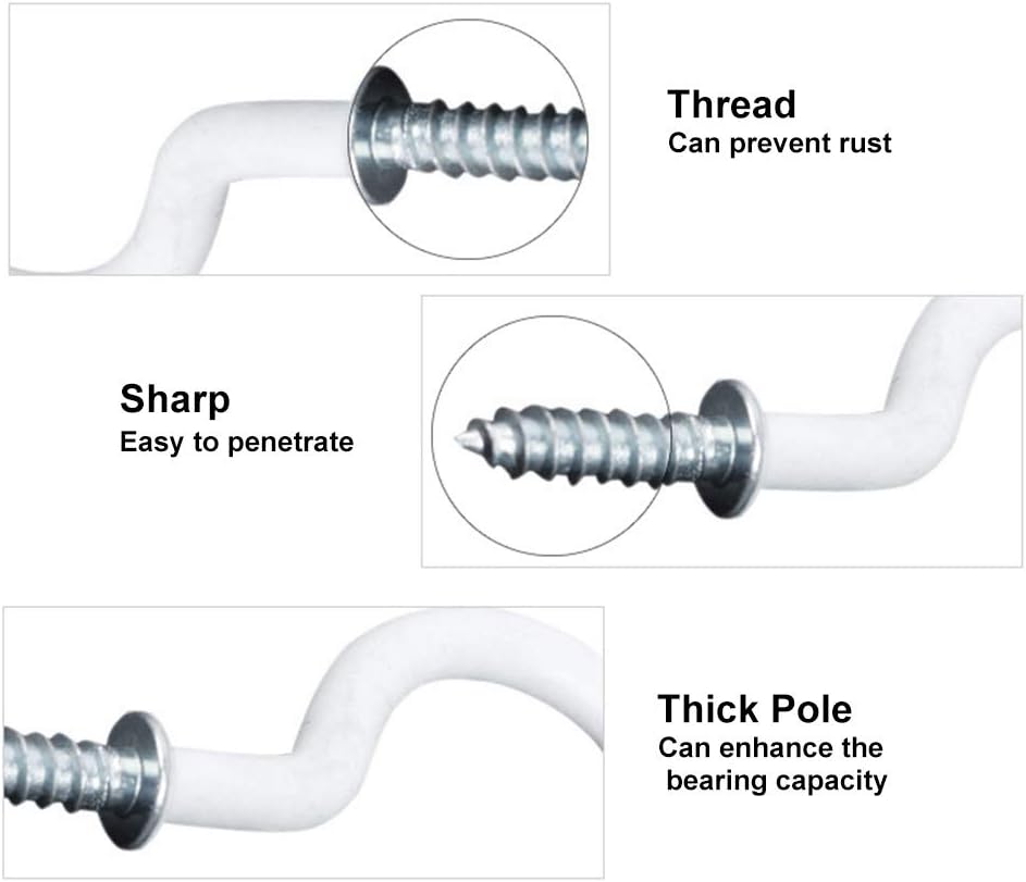 - Anti-rust Durable: Our cup hooks surface are made of plastic Vinyl coated. The standard thread is electroplated, rust resistant durable.