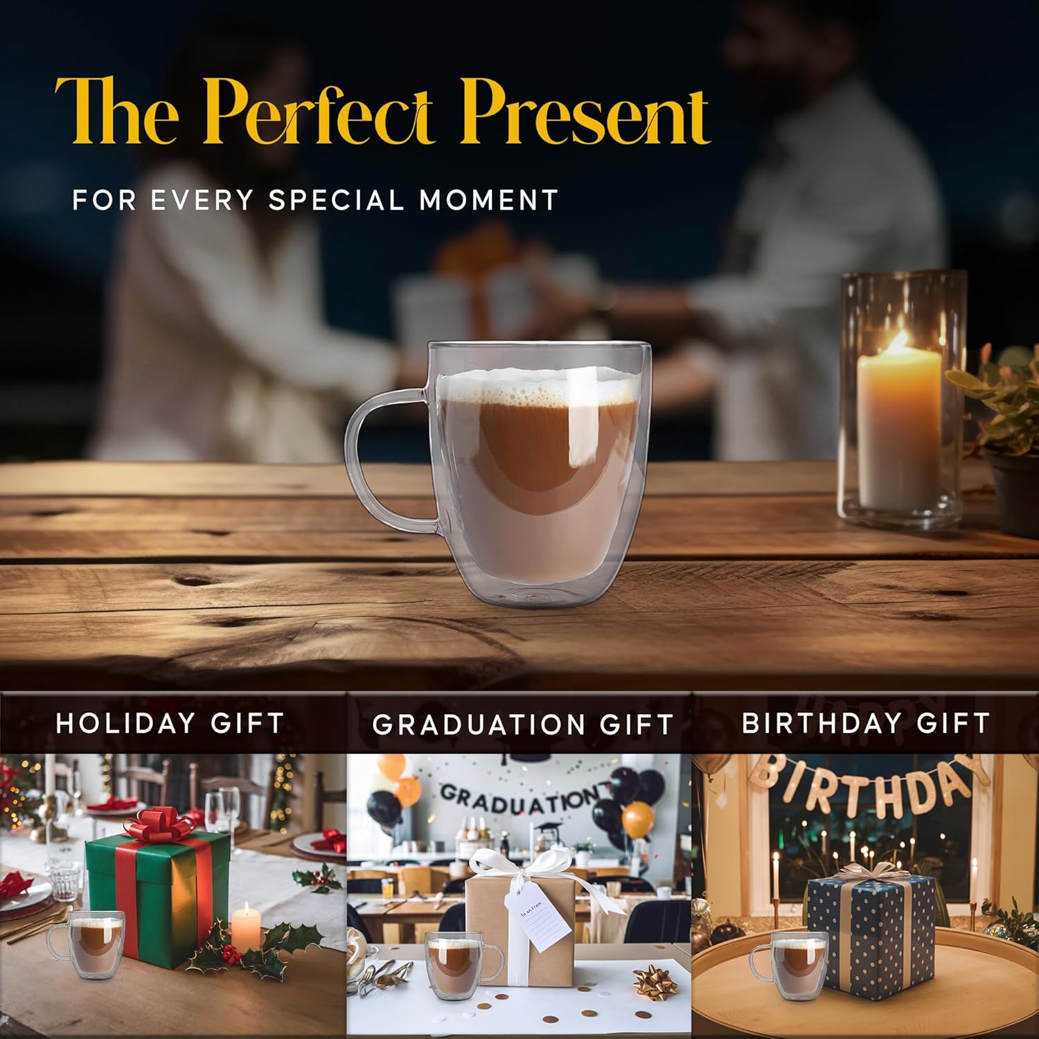 - Durable Glass Coffee Mugs - Made of Grade AA borosilicate glass, our insulated clear glass coffee glass mugs are a great addition to your kitchen. These scratch-resistant clear mugs are built to last for years with proper care.