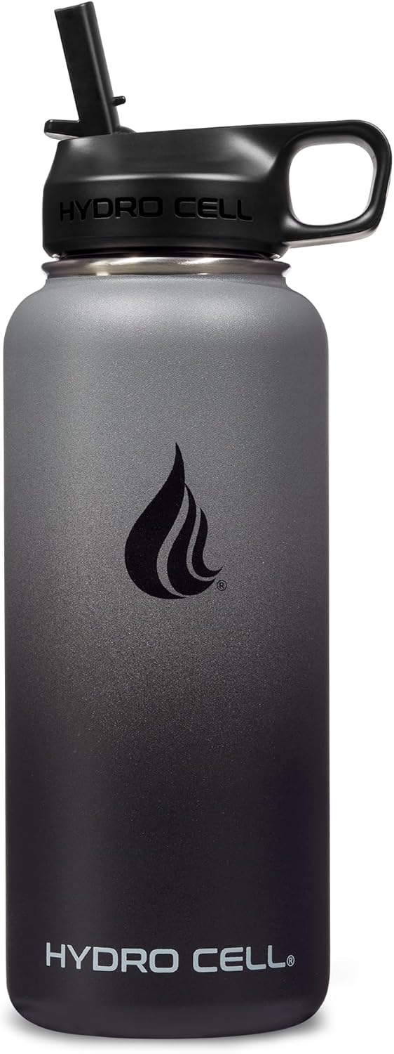 HYDRO CELL Stainless Steel Insulated Water Bottle with Straw - For Cold & Hot Drinks - Metal Vacuum Flask with Screw Cap and Modern Leakproof Sport Thermos for Adults (Graphite/Black 32oz)