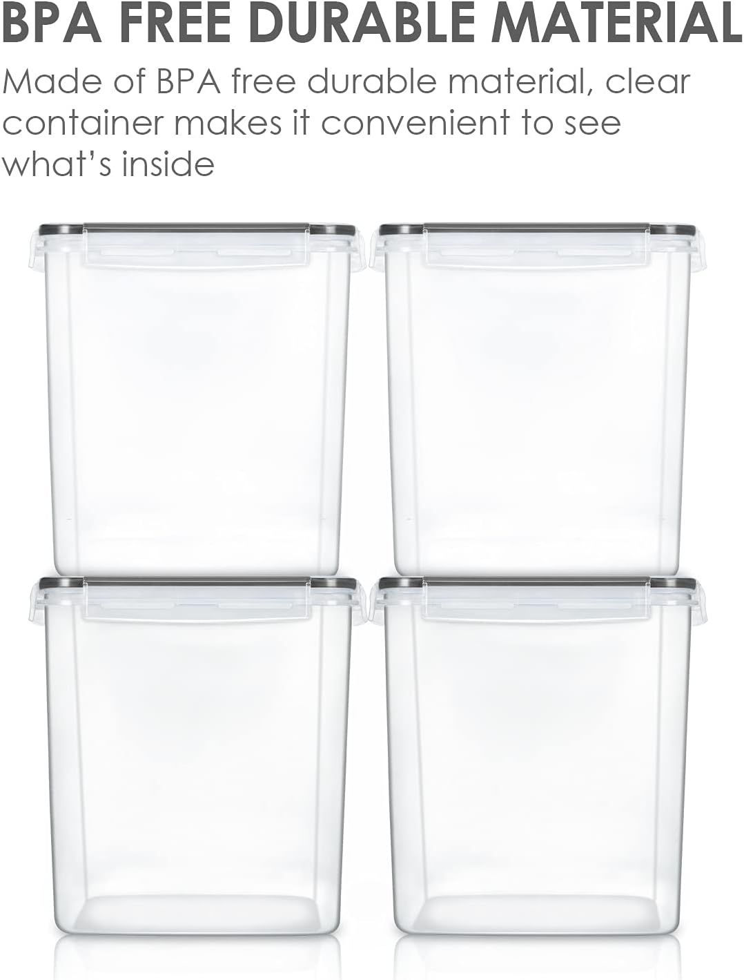- Perfect for Storing Dry Food ---- The size of each container is 7.5 x 7.5 x 7.6 inch ( 4.3L / 145.4oz). These kitchen storage containers are perfect for many kinds of dry food and baking supplies, such as flour, sugar, rice, grain, chips, cereals, nuts, beans, snacks, pasta, coffee and tea. Plus wide enough openings to reach in with measuring spoons.