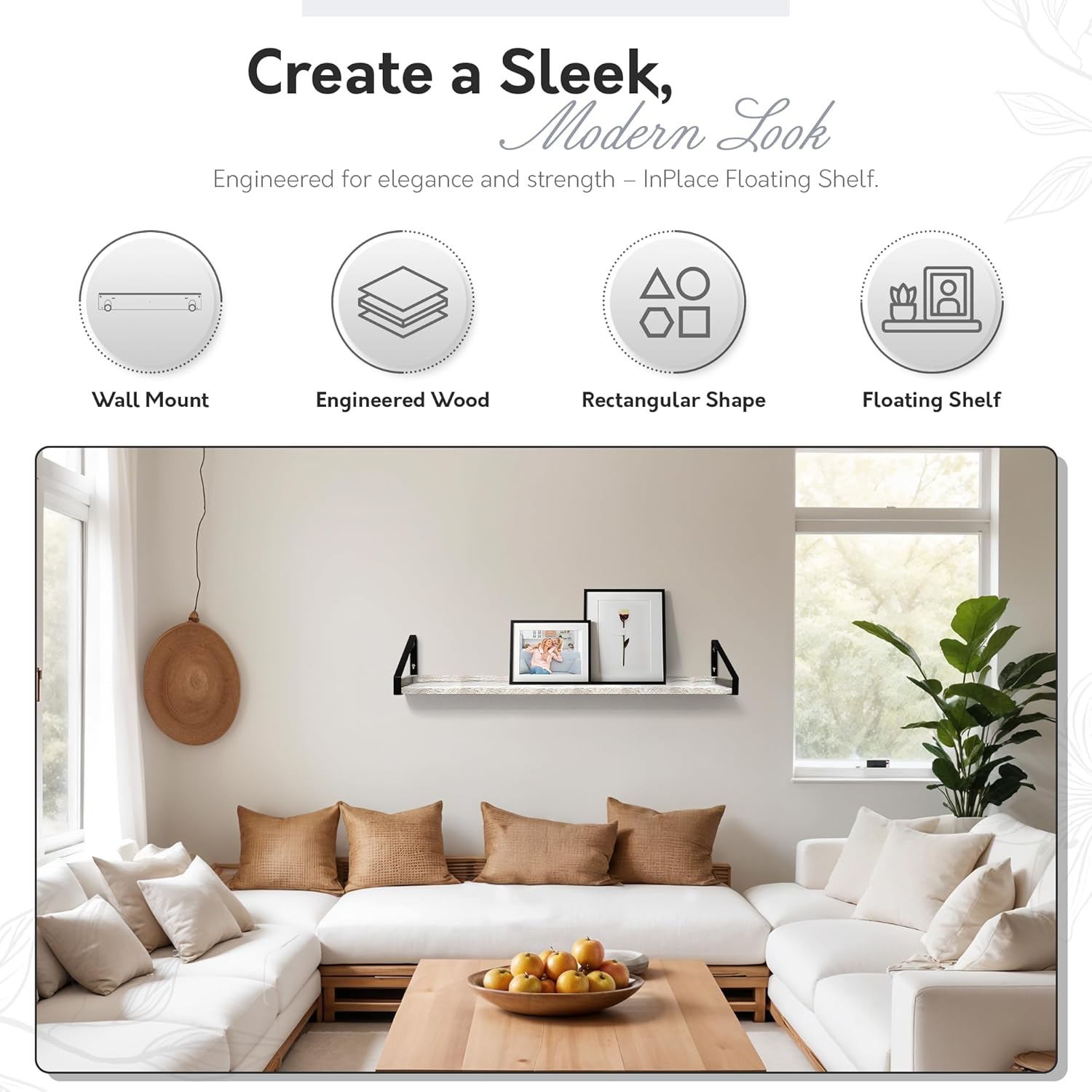 - RUSTIC MEETS MODERN The industrial brackets and sleek design make this white floating shelf a perfect fit for minimalist, farmhouse, or modern home decor themes.