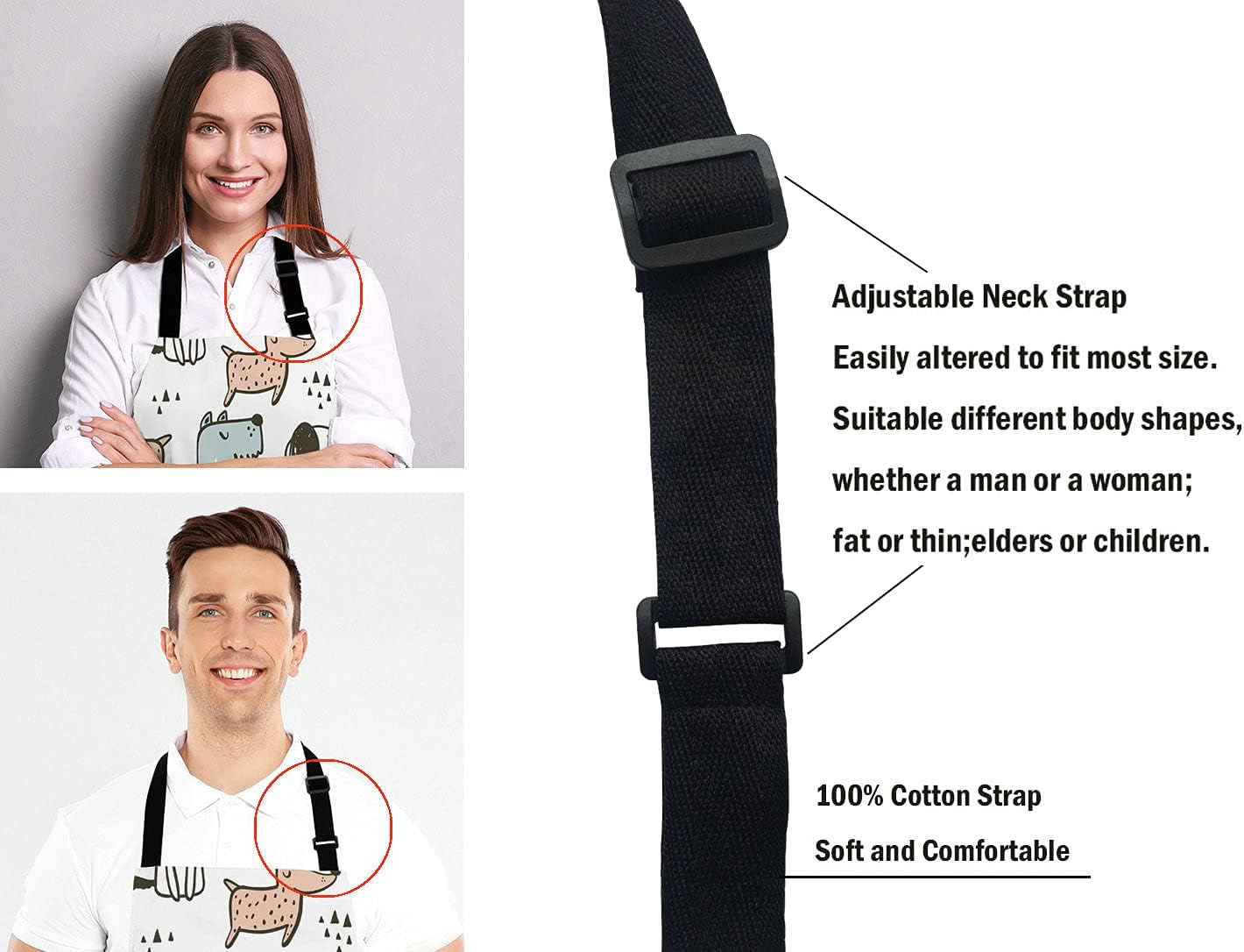 Cartoon Dogs Apron for Women and Men, Adjustable Kitchen Chef Apron for Cooking Baking - Cute Birthday, Anniversary, Mother's Day Apron Presents for Mom Wife Girlfriend Aunt Grandma