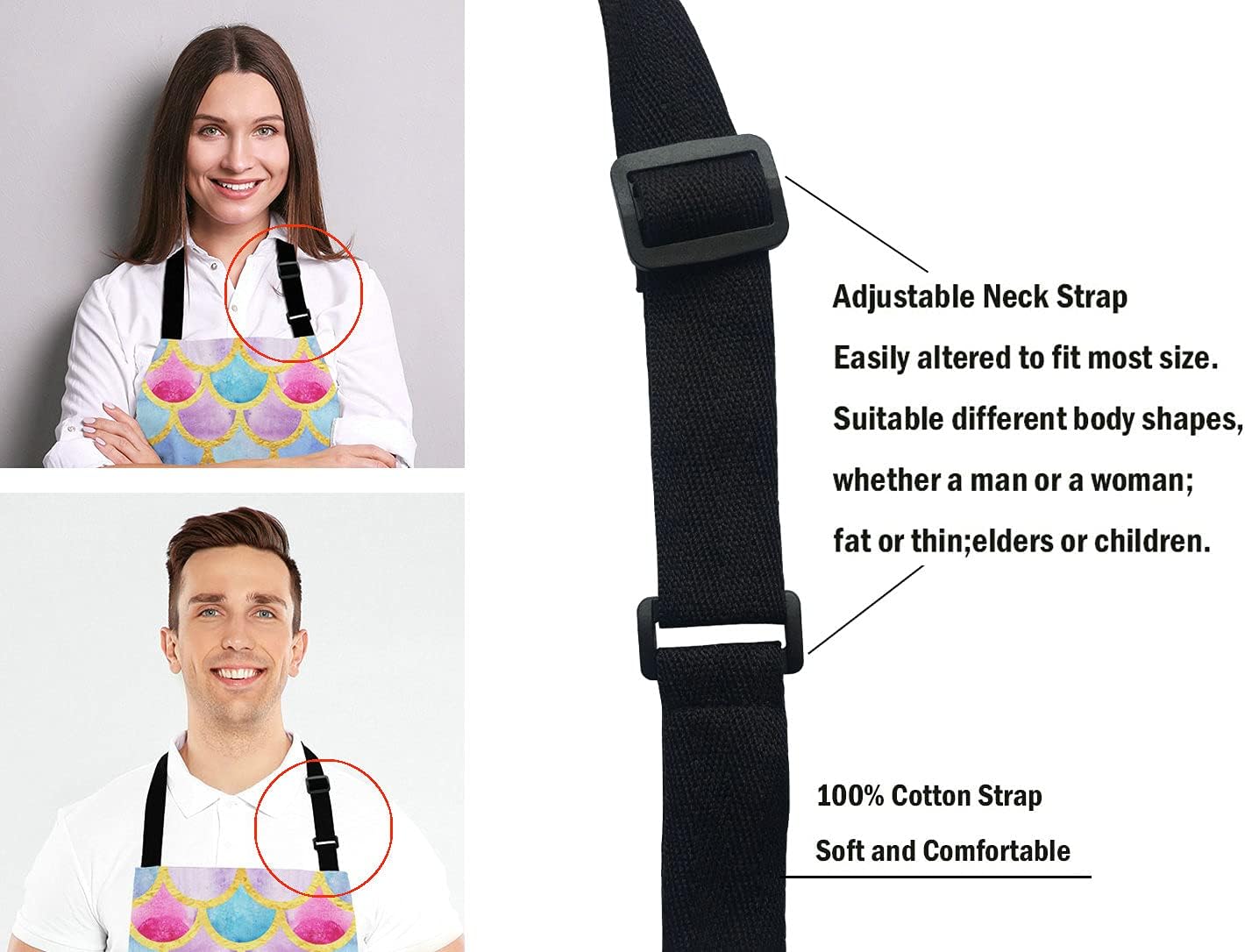 Mermaid scales Kitchen Cooking BBQ Chef Apron, Watercolor fish scales Apron for Men, Women - Dad Gifts, Gifts for Men - Birthday, Mothers Day Gifts for Mom, Wife, Husband, Brother, Friends