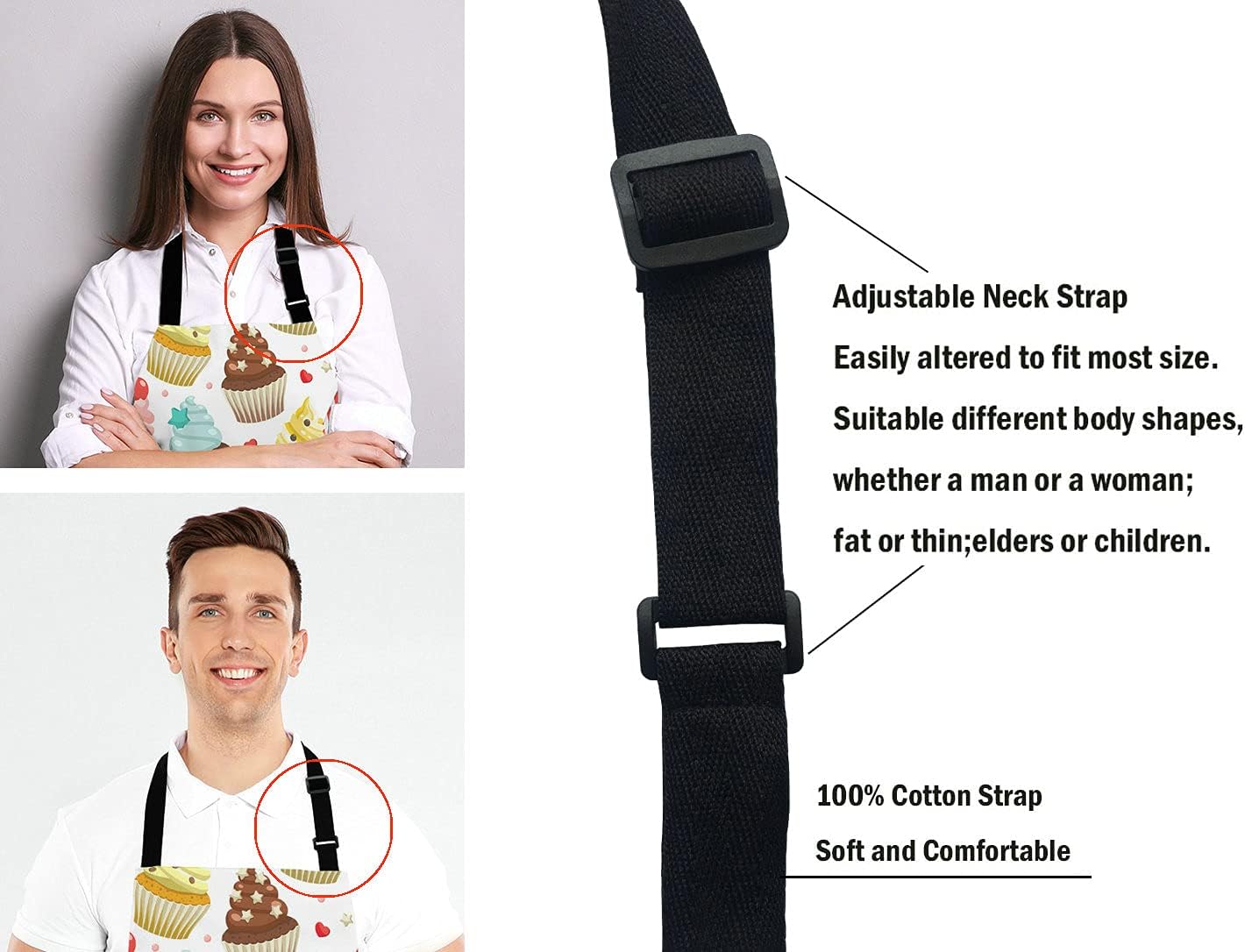 Yummy Colored Cupcakes Adjustable Bib Apron, Cute Cupcake Pattern Apron, Sweet Dessert Cooking Kitchen Apron for Men Women