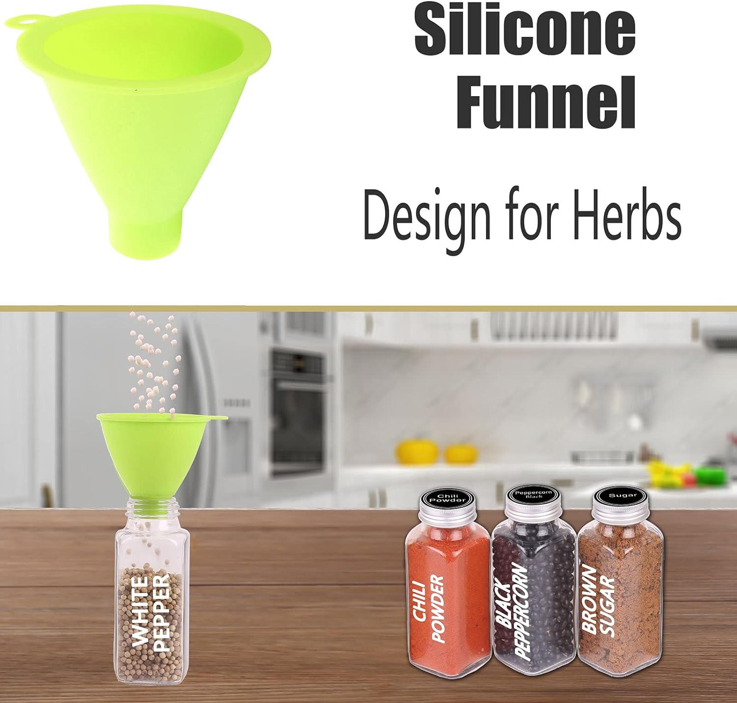 - CONVENIENT SILICONE SPICE FUNNEL: The funnel specially designed for spice makes it easier to add new spices to your empty spice jars.