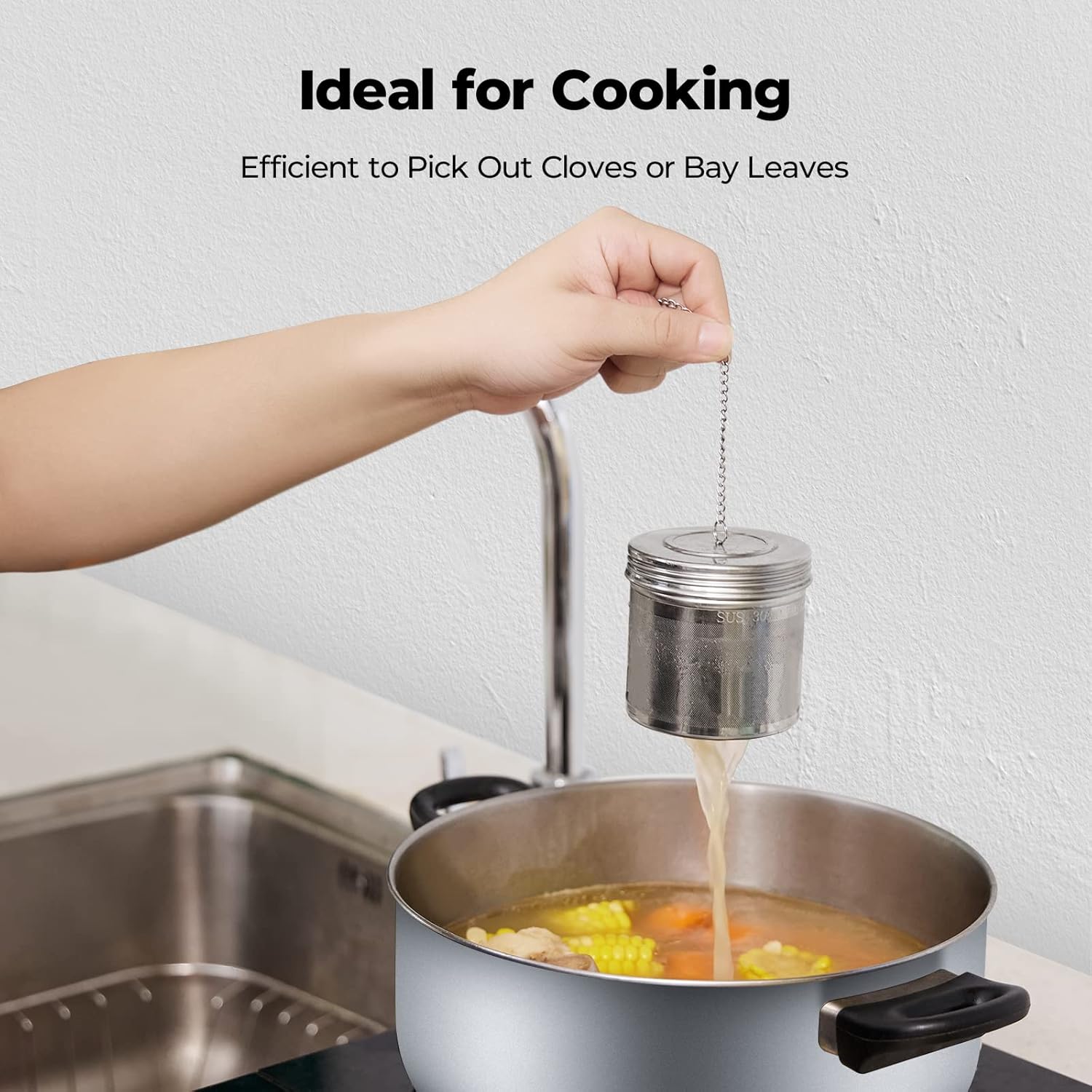 - Extra Fine Mesh Hole: The distance from hole to hole is shortened by double so our large loose leaf tea steeper has more holes for better flavor and ensures very minimal sediment leak. Tea balls for loose tea is perfect to hold and extract the flavor of tea leaves, spices, ground coffee, and herbs. Especially Ideal for rooibos and other small tea leaves.
