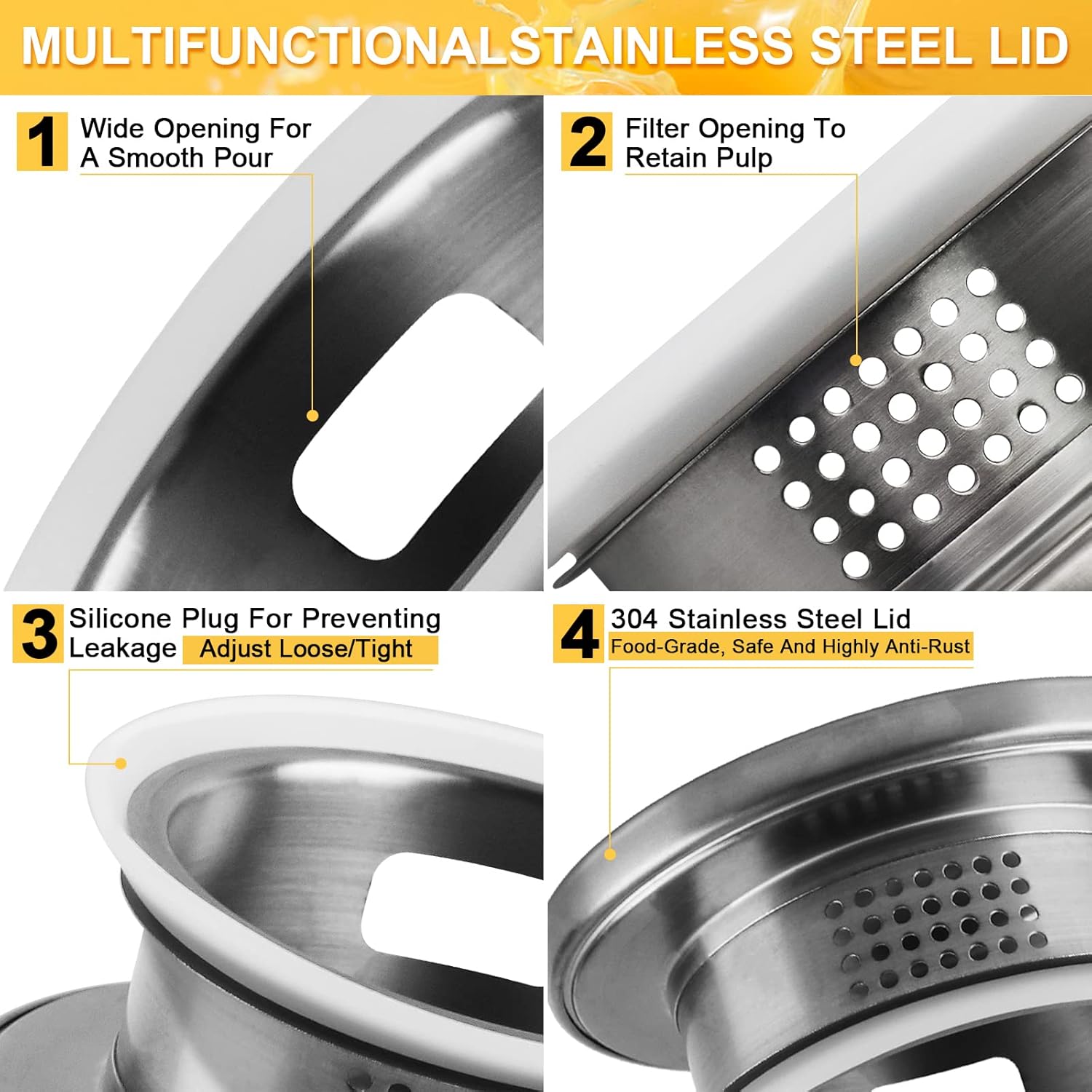 - LOOSE, TIGHT AND STAINLESS STEEL LID: The lid is made of 304 stainless steel. If the lid becomes loose when pouring water, remove the silicone ring from the lid and put it in the opposite direction, and the lid will become tight. The lid is detachable and has a smooth surface, it has two outlets, one for fast water pouring and the other for filtration, great for keeping ice, large chunks of fruit, and tea bag inside the pitcher; also because of the two outlets the pitcher is not airtight