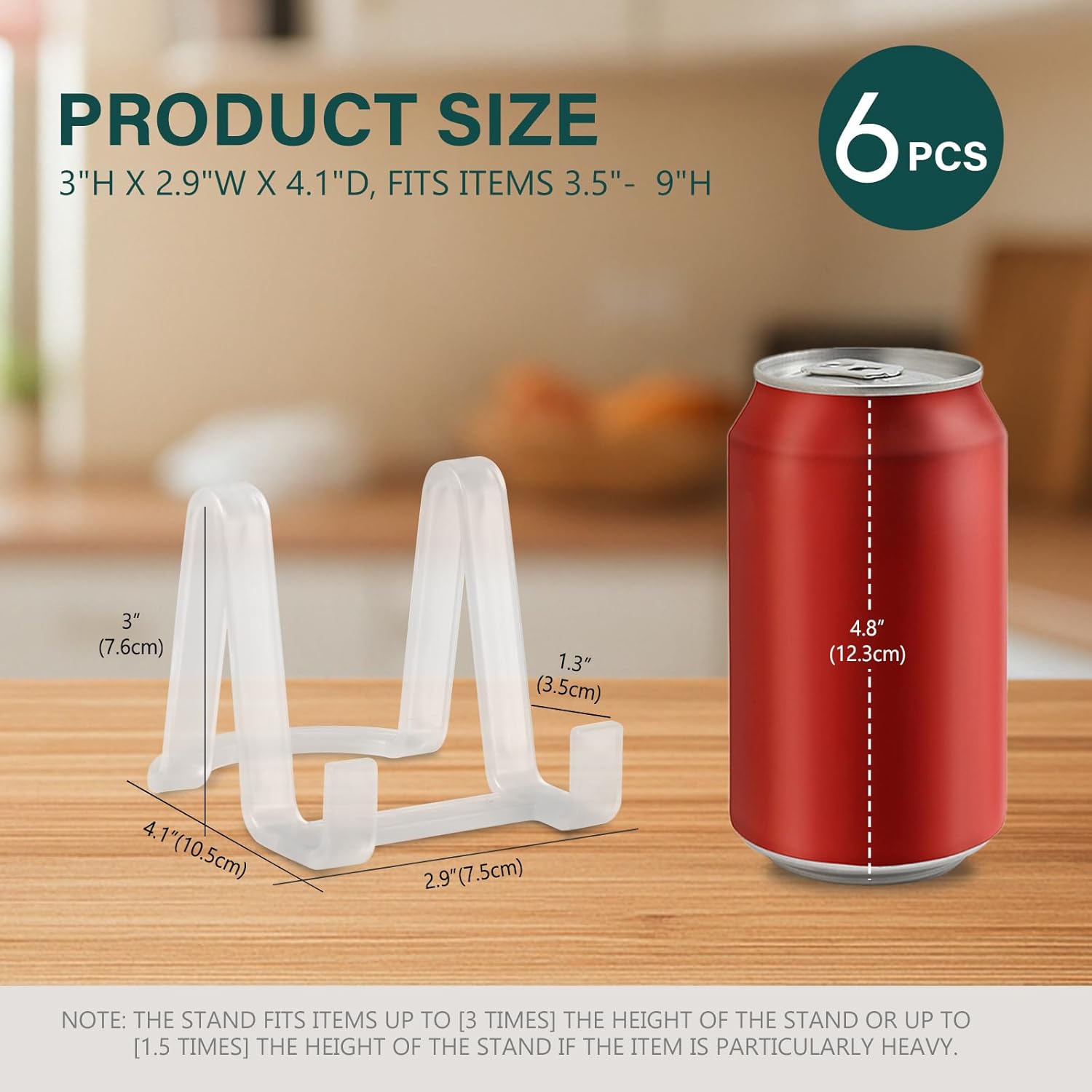 Artliving Plate Display Stands Easel Holder - 3-Inch Plastic Stand for Small Decorative Plates, Pictures and Photos - Clear (6-Pack)