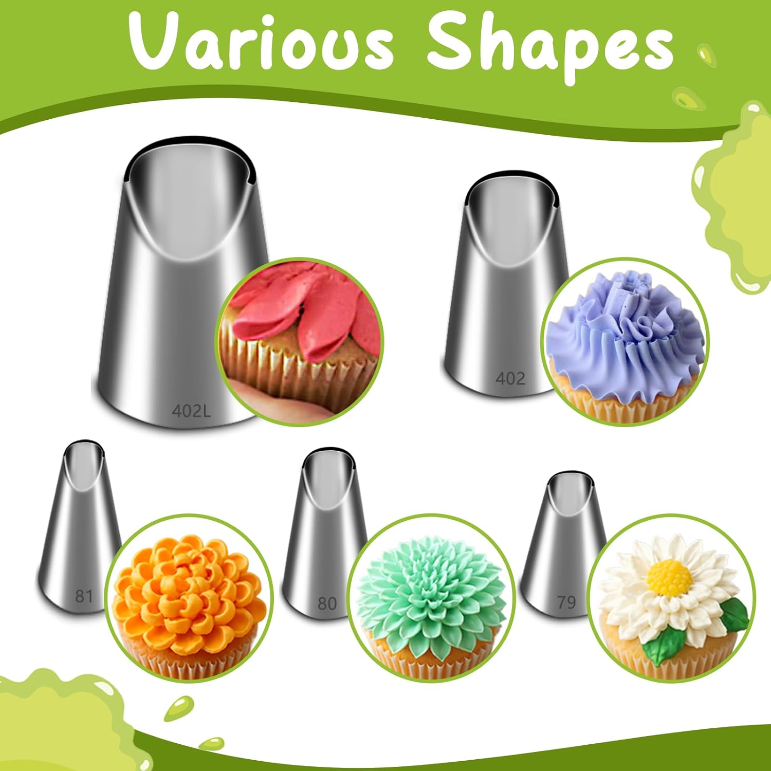 - Make Multiple Patterns: This frosting piping kit has 5 different types of replaceable piping tips, you can easily make more patterns on cakes, making your desserts more delicious and beautiful