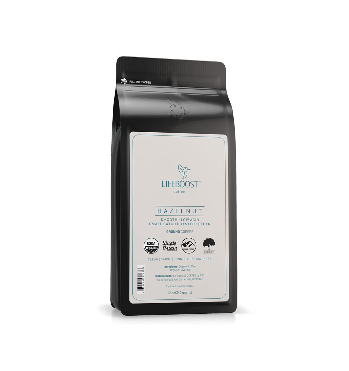 Lifeboost Hazelnut Ground Coffee – Organic, Low Acid, Non-GMO Hazelnut Flavored Coffee – Single Origin, Mold-Free Mycotoxin Tested Coffee, 12 oz