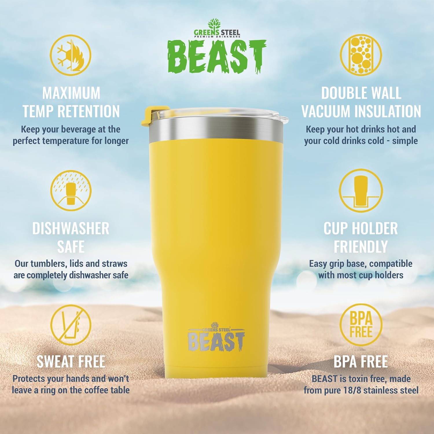 Beast 30 oz Tumbler Stainless Steel Vacuum Insulated Coffee Ice Cup Double Wall Travel Flask (Lemon)