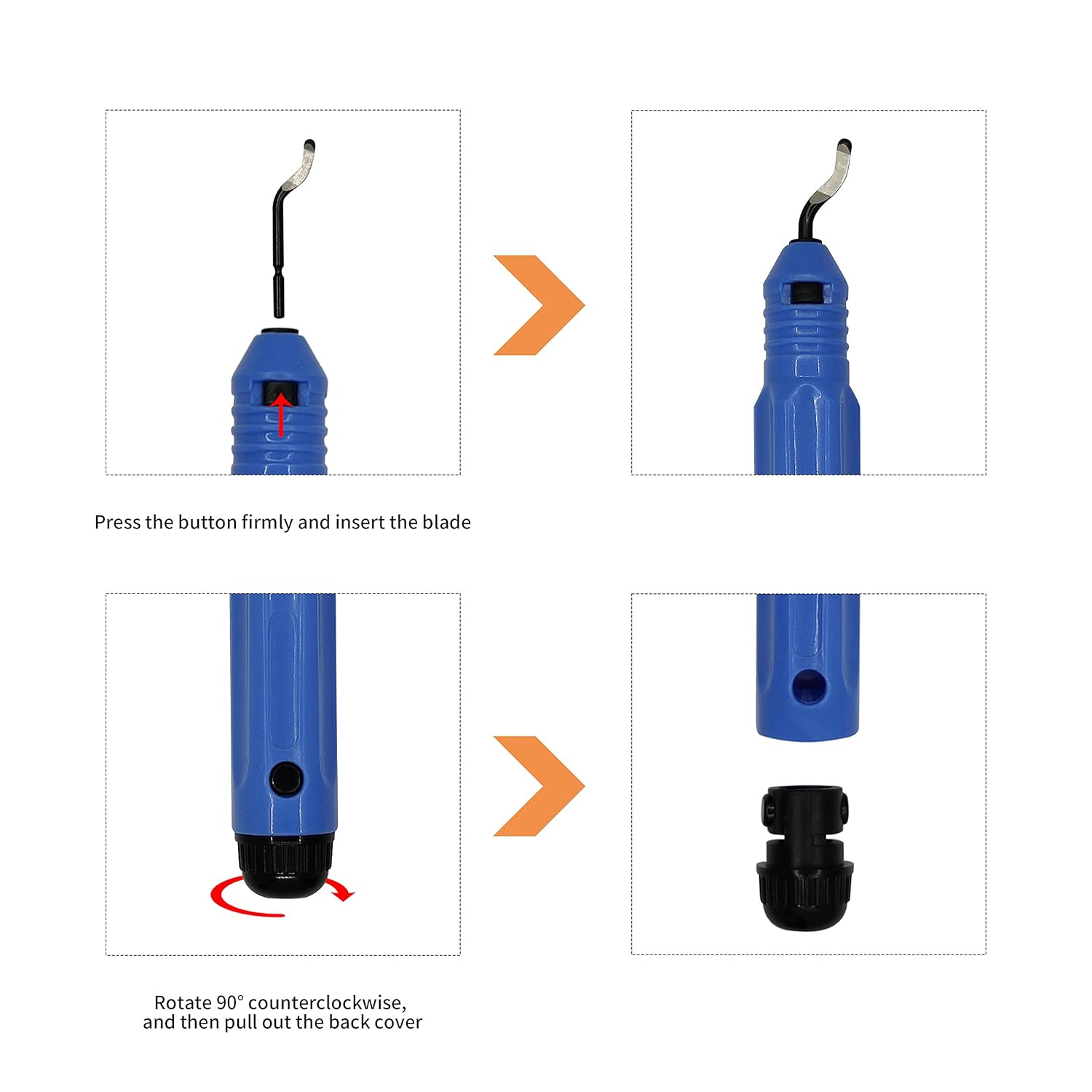 - This deburring tool offers comfortable and secure grip.360 degree rotated, simply pressing the button on the deburring cutter to replace the blade, simple and easy using deburring scraper blade for you!
