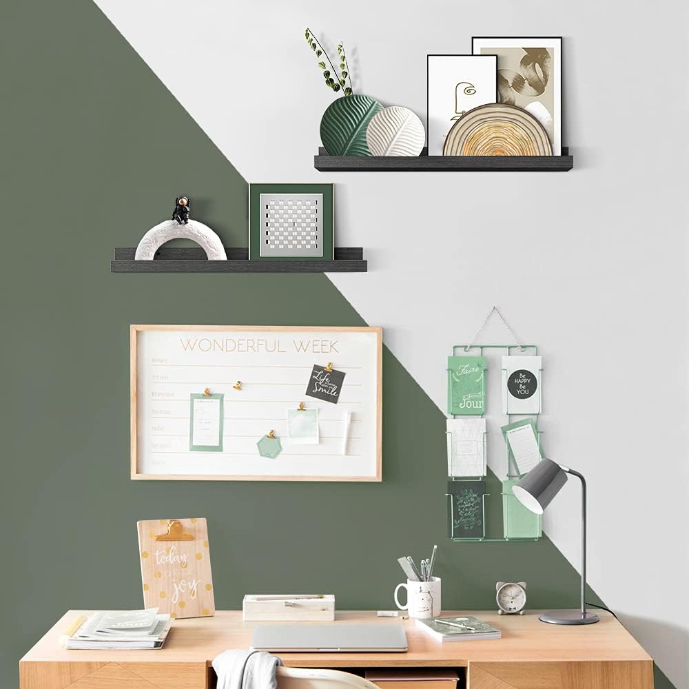 - 【Perfect solution for your walls】The picture ledge shelf is SAME SIZE as each other (L 23.1" x D 4.5" x H 2.2") and is such an easy way to display photos without making lots of holes in your walls. The wall shelves are crafted from Paulownia wood which are lightweight yet proportionately strong, sustainable real wood. They come fully assembled and all mounting hardware is included in the package.
