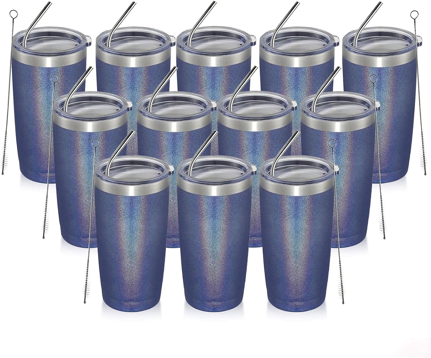 - [Package included]12*20 oz glitter tumbler,12*splash proof cover with hole, 12*bent stainless steel straw, 6*straw brush
