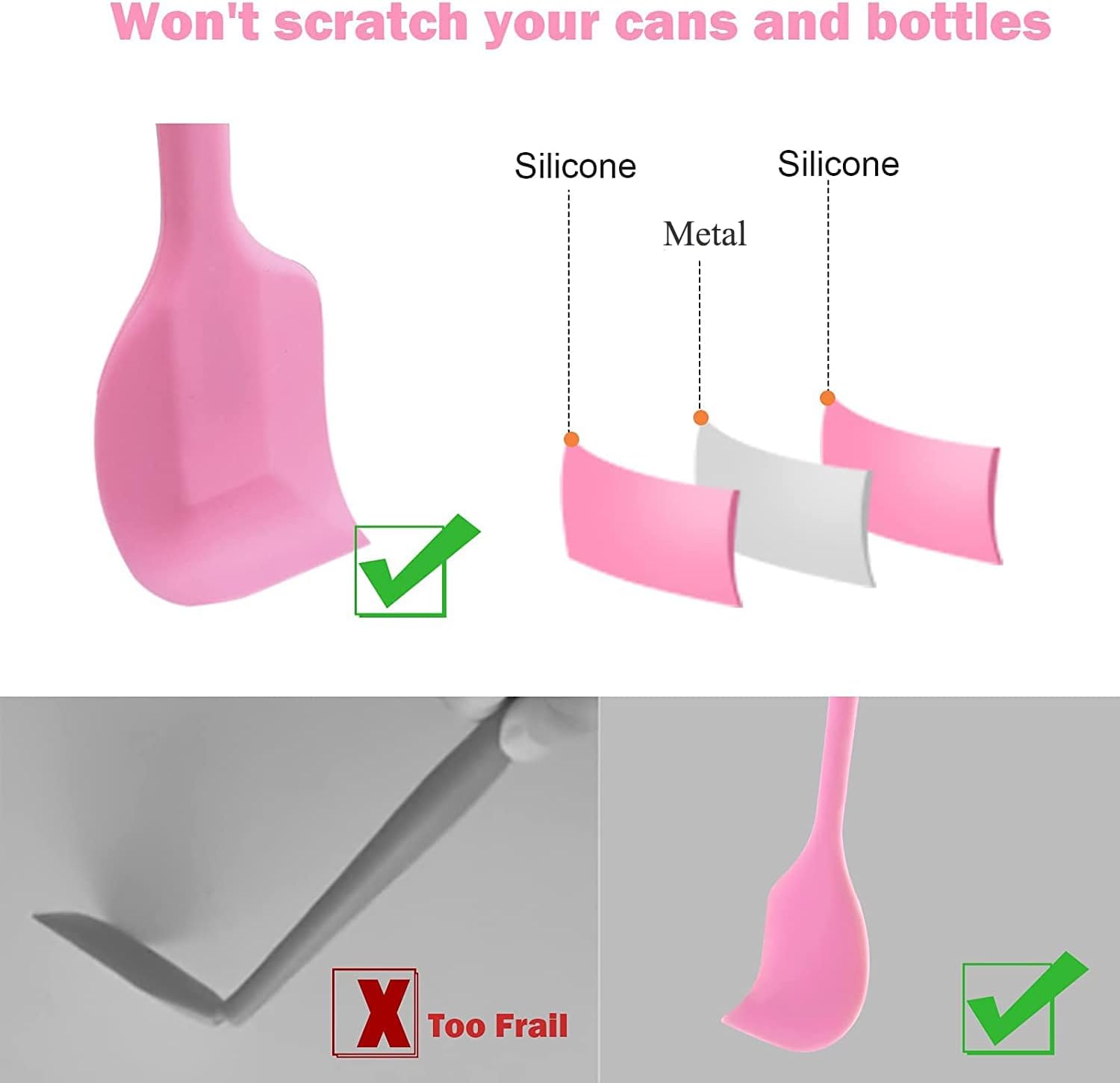 - Reliable Material: The silicone dab tools are made of food grade silicone, perfect for any food can and small cosmetic bottles without any pollution. The silicone spatulas are soft and flexible. Won't scratch your cans and bottles.