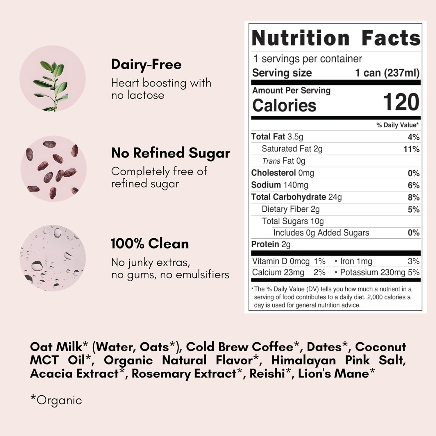 - CLEAN INGREDIENTS - Our oat milk cold coffee drinks are made with the cleanest ingredients - no junk, no gums, no emulsifiers, just sustainable, organic ingredients you can pronounce