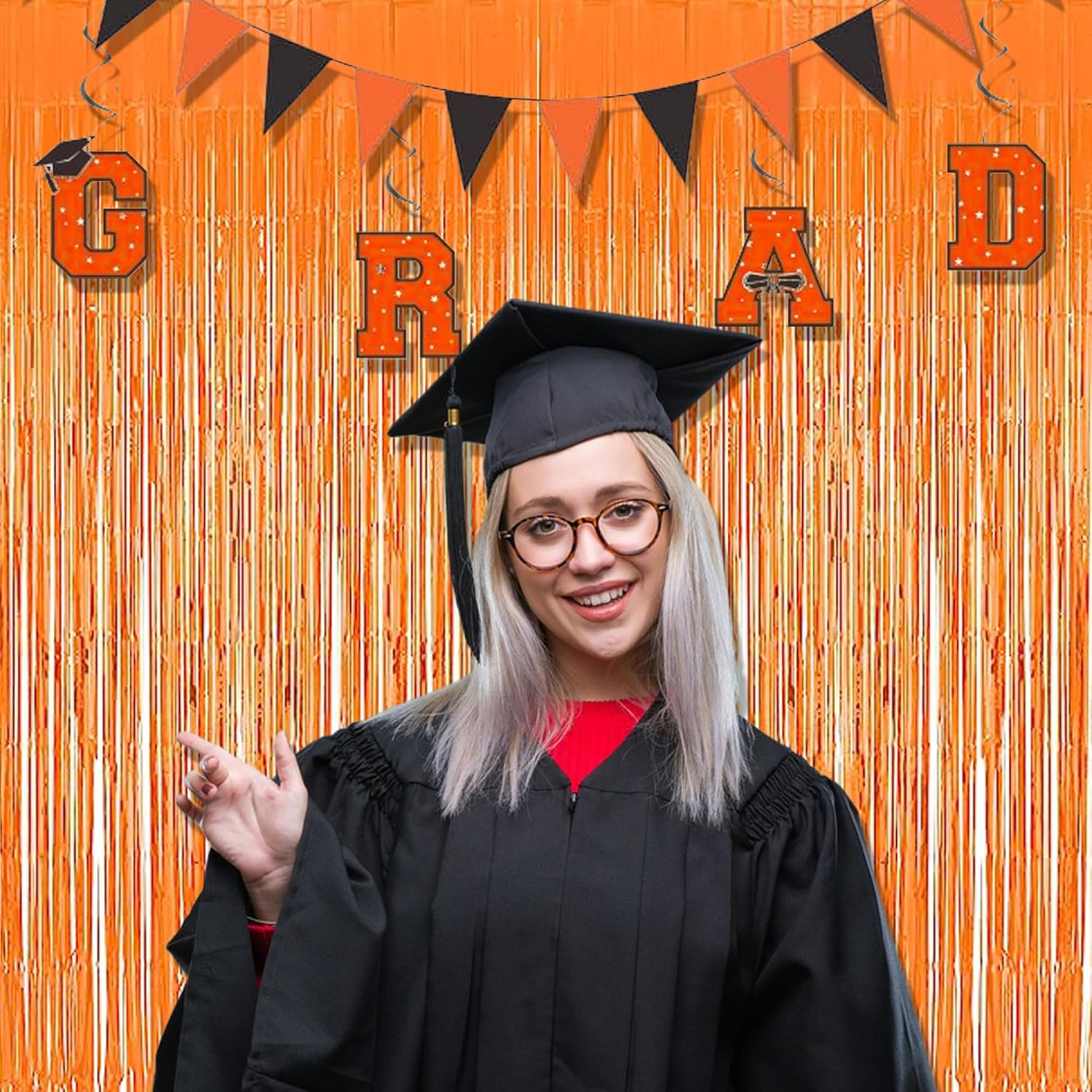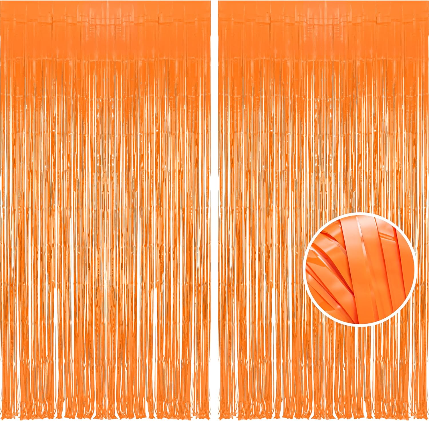 Foil Fringe Curtains Halloweens Decorations - Orange Tinsel Photo Backdrop Party Streamers for St Patricks Day, Easter, Birthdays, Fall, Pumpkin Theme, Thanksgiving, Basketball Party Decorations