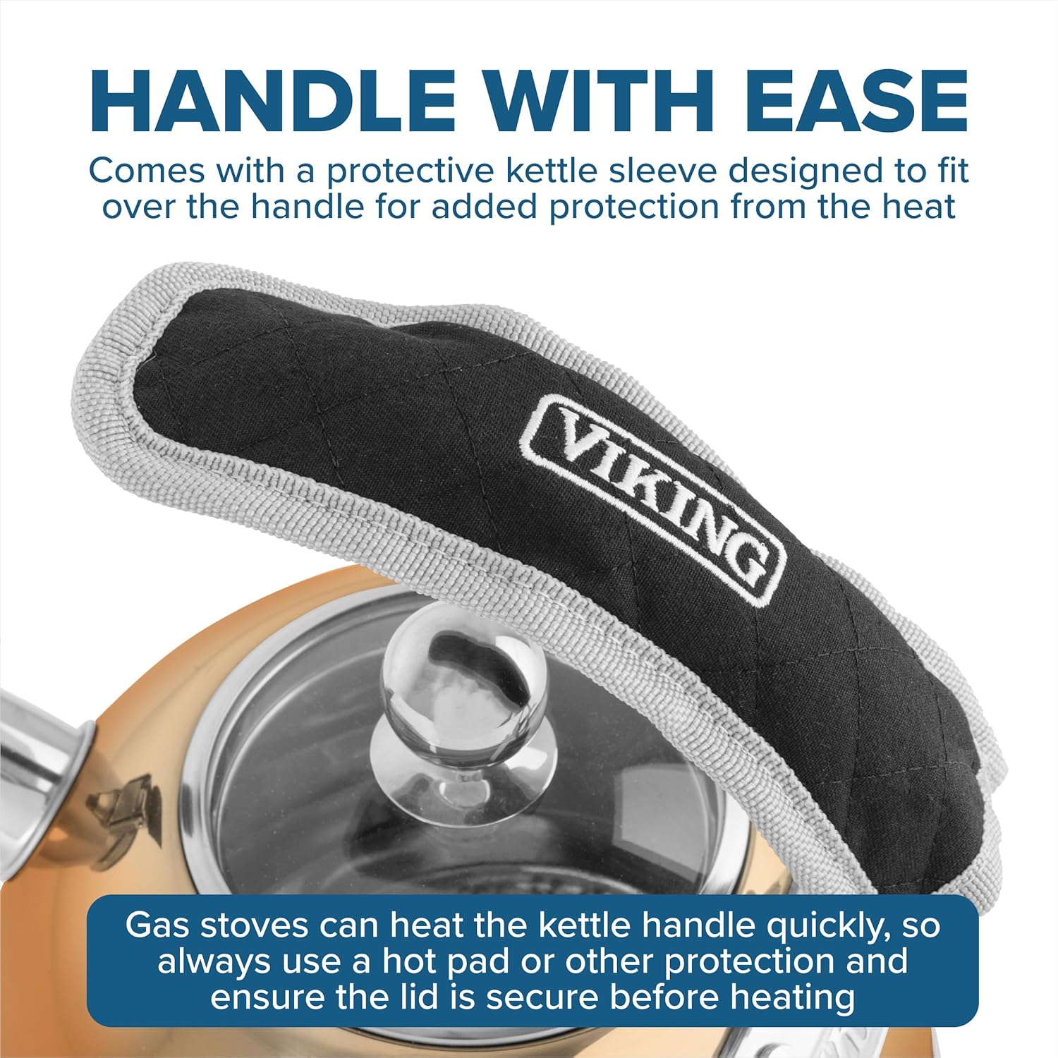 Viking 3-Ply Stainless Steel Tea Kettle, 2.6 Quart Stovetop Hot Water Pot with Tempered Glass Lid, Ergonomic Handle, Induction Ready, Rose Gold