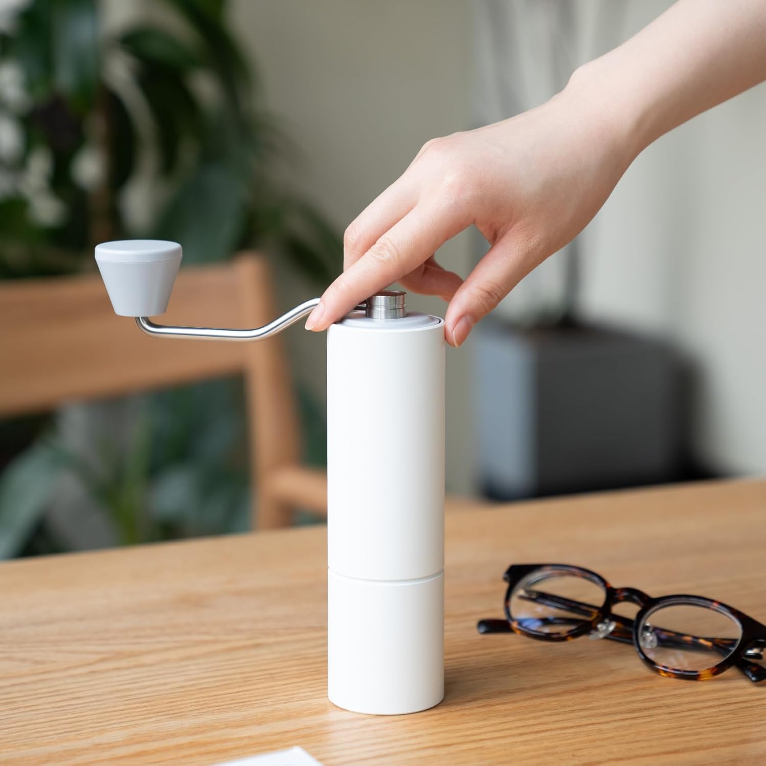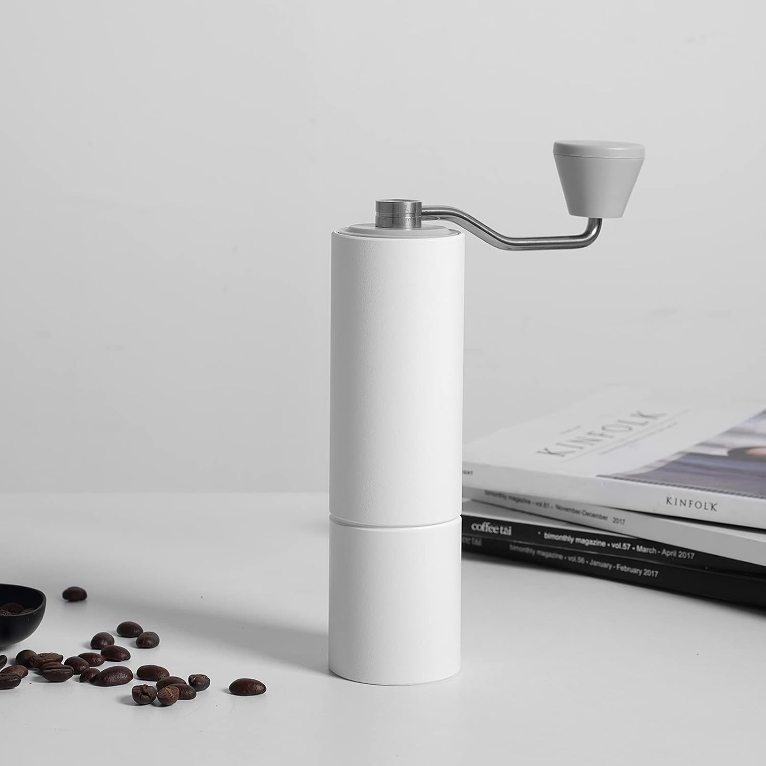 - [ Easy Clean & Carry ] Coffee grinder body weighs 700g, while maintaining a lightweight and a moderate sense of weight and luxury. It is ideal not only for home use but also for carrying outdoors or traveling. Easy to disassemble for cleaning - just be cleaned by brush