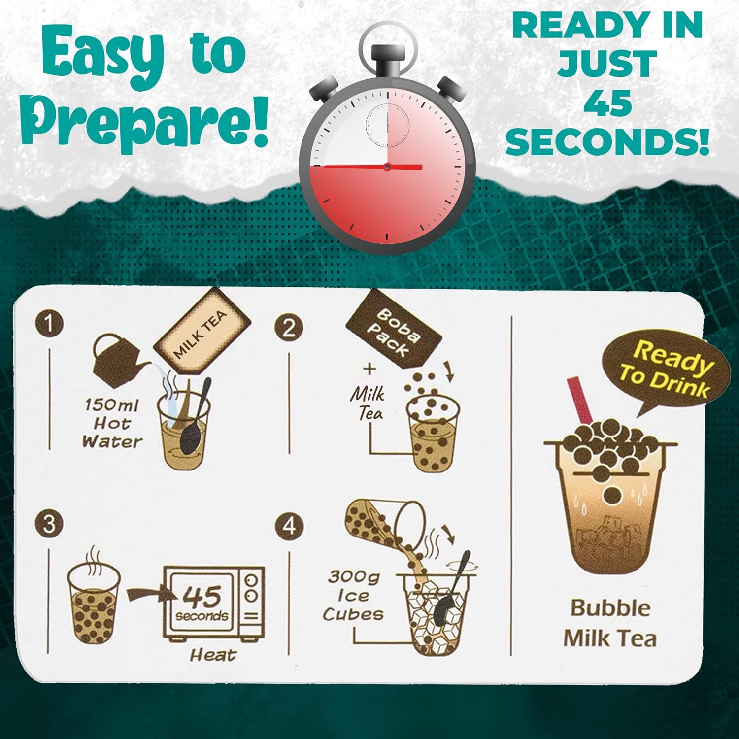 - ✅ EASY TO PREPARE - All you have to do is pour 1 pack in a cup with 150ml hot water until it dissolves. Add 1 boba packet and put it in the microwave for up to 45 seconds until your milk tea's ready.