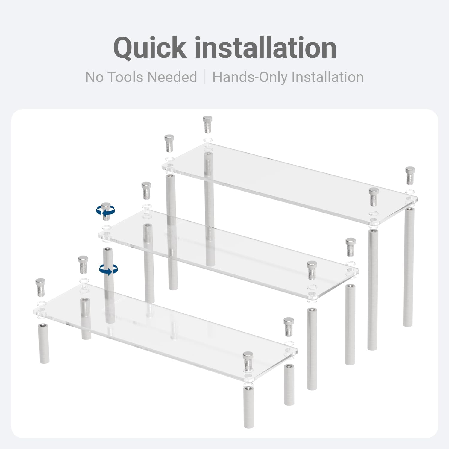 - Acrylic Stands Display Shelf Can Help Organize and display your items.This Clear Display Riser Is an Great Ideal for Displaying Celebrating Party Desserts, Collection, Displaying Cosmetics And More.