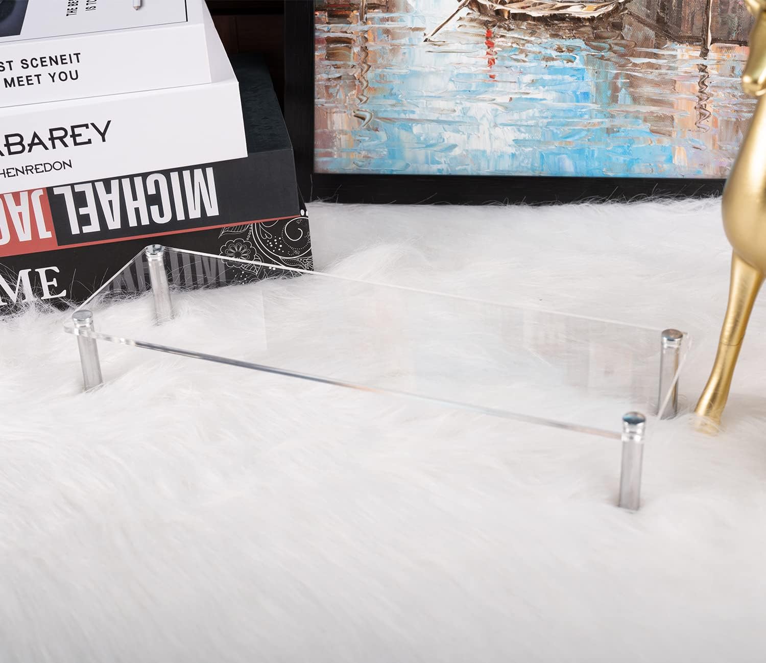 - Acrylic Stands Display Shelf Can Help Organize and display your items.This Clear Display Riser Is an Great Ideal for Displaying Celebrating Party Desserts, Collection, Displaying Cosmetics And More.