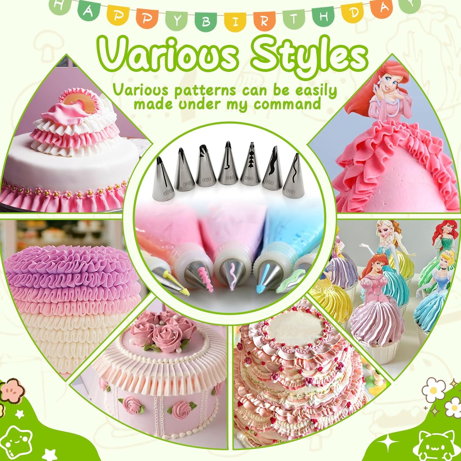 - Russian Piping Tips: We offer 7 Pieces pleated skirt decoration kits , So you have everything you need to decorate cakes, pies, cookies, pastries and much more