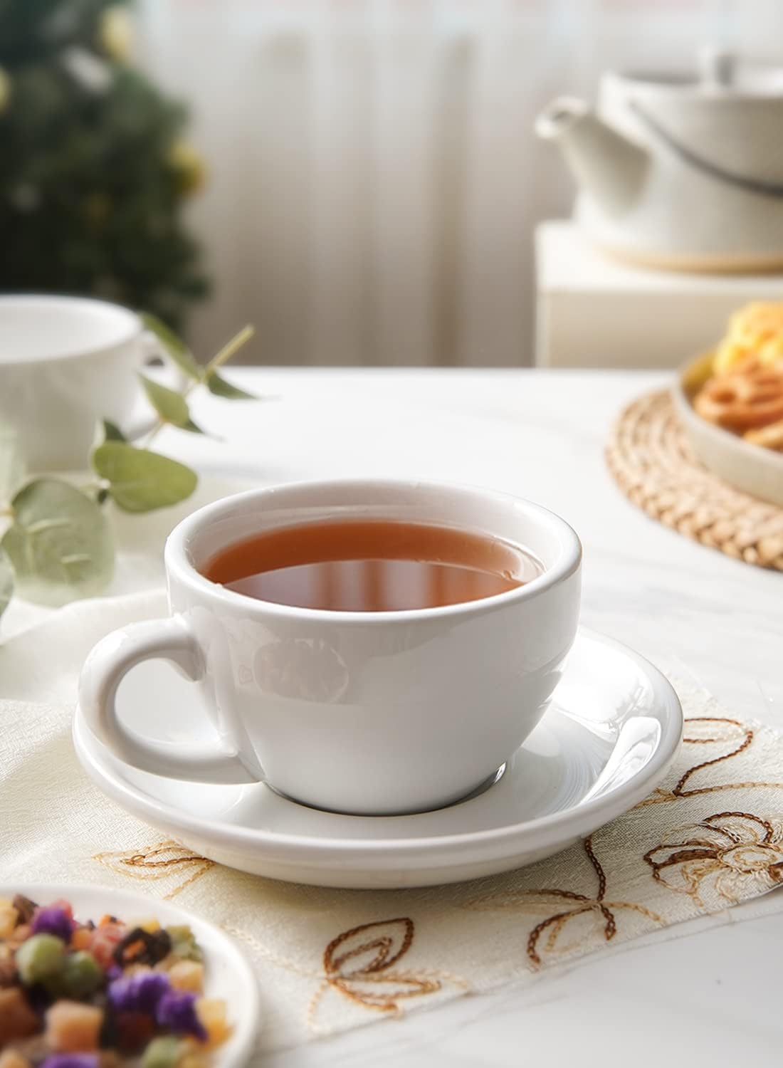 LE TAUCI 8 oz Cappuccino Cups with Saucers,Ceramic Large Coffee Cup for Au Lait, Double shot, Latte, Cafe Mocha, Tea - Set of 4, White