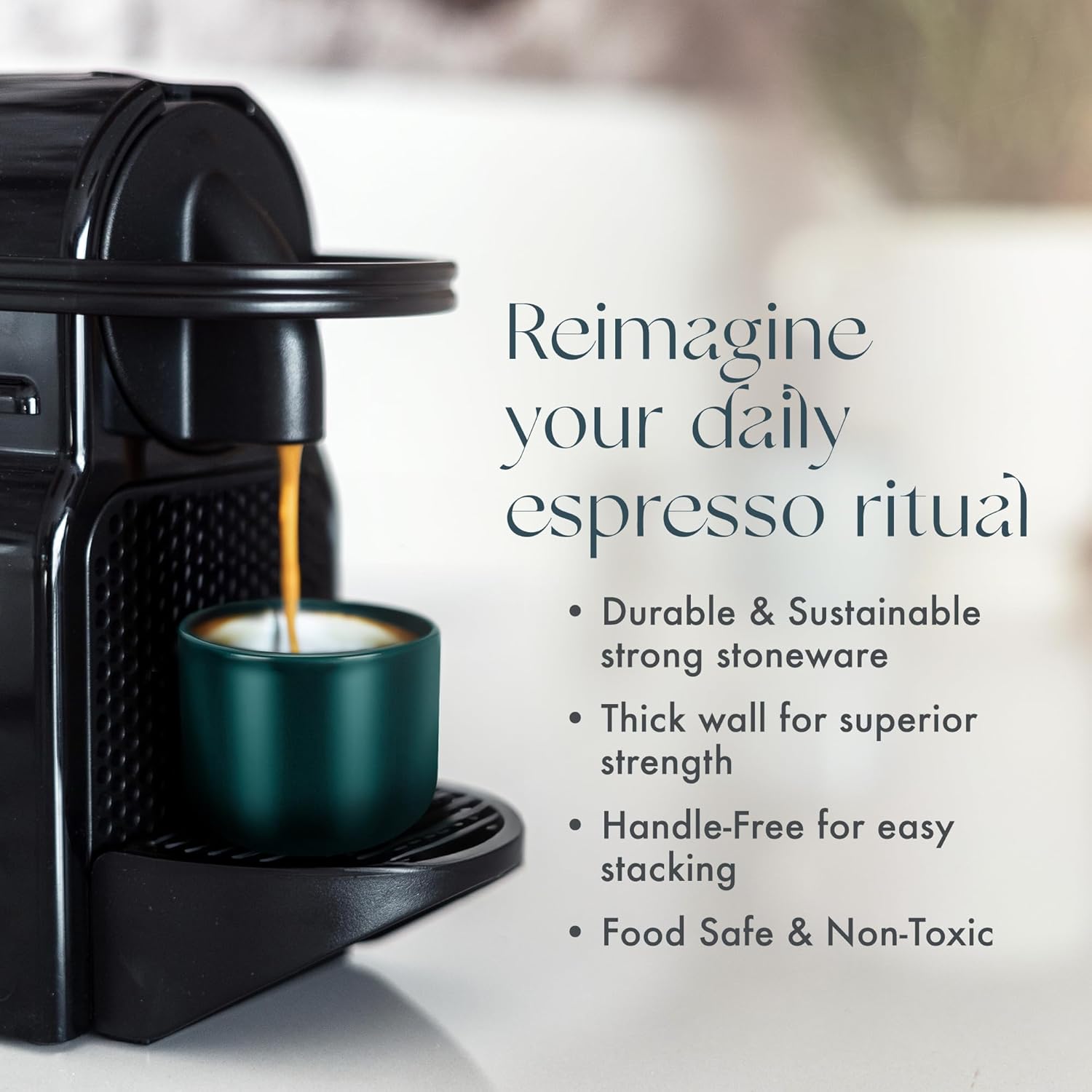 Folk Ceramics Leonard Ceramic Espresso Cups | Modern Stackable Demitasse Mugs for Espresso | Thick Walled, Handleless, Durable, Dishwasher & Microwave Safe | Set of 2, 3oz | Blue Emerald