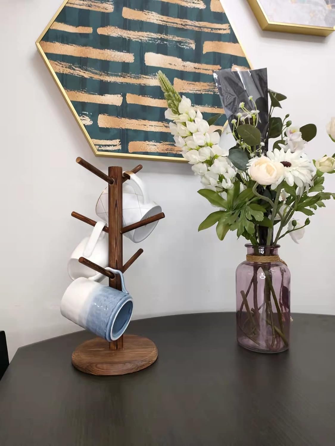 - Your Space Saver:Mess?No Space to hang your mugs?Due to the size,the coffee mug tree can be used for your coffee bar,counter,your cabinet,keep your room tidy
