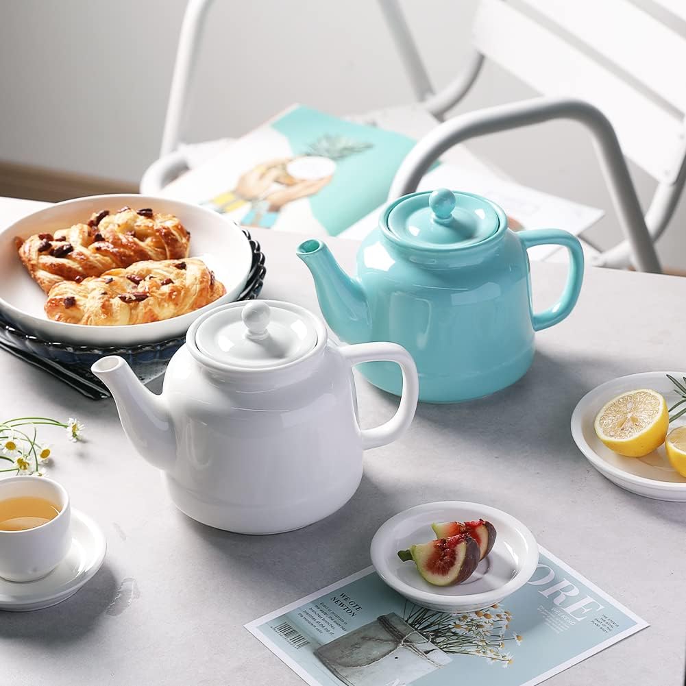 Sweejar 35 oz Porcelain Tea Pot, Teapot with Removable 18/8 Stainless Steel Infuser, Microwave & Dishwasher Safe Tea Maker, Tea Infuser Pots for Blooming loose Leaf Tea,Chrismas Women Gift (Turquoise)