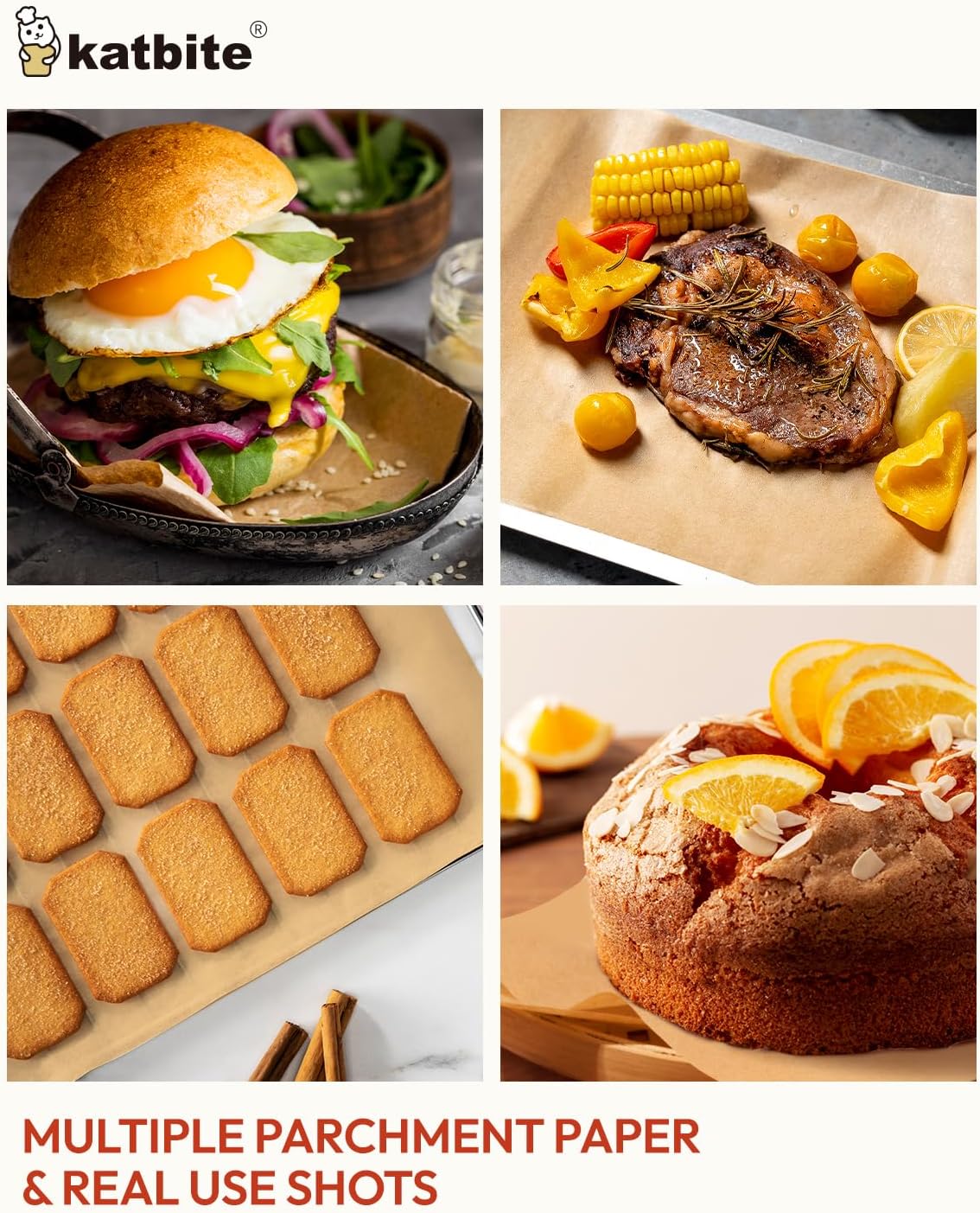 Katbite 265Pcs 10x15 inches Parchment Paper Sheets, Heavy Duty Unbleached Baking Paper, Pre-cut and Oil Proof Perfect for Steaming Cooking Bread Cake & Wrapping Foods[Advanced Series]