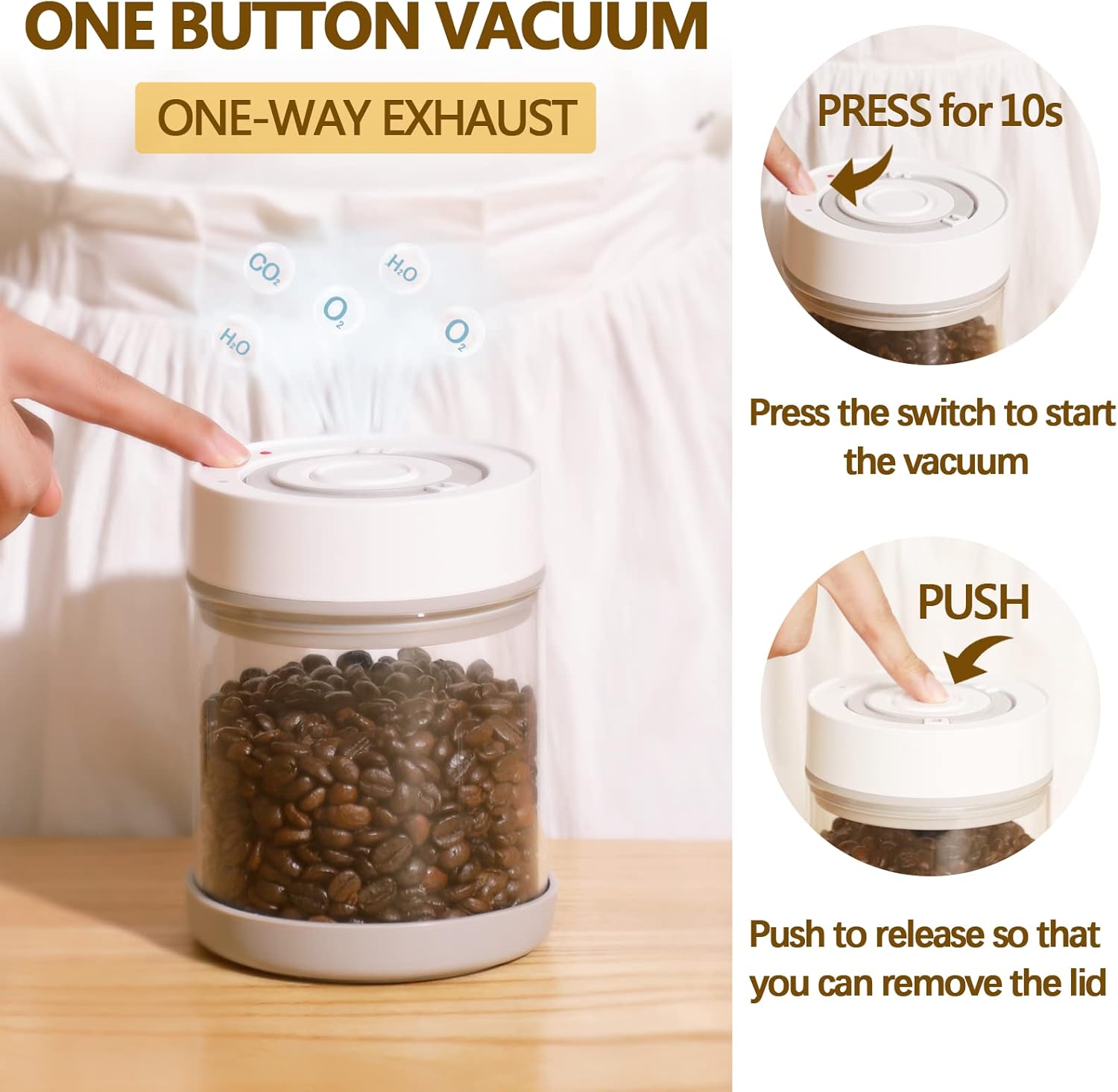- 【SMART & LONG-LASTING FRESHNESS】This electric vacuum container continuously maintains low pressure & less oxygen in the jar, keeping food 5x longer dryness & freshness than traditional vacuum sealed containers / non-vacuum storage methods, which makes planning meals become an joy. When it is used as a coffee bean storage tank, brewing a cup of authentic coffee will no longer be a problem.