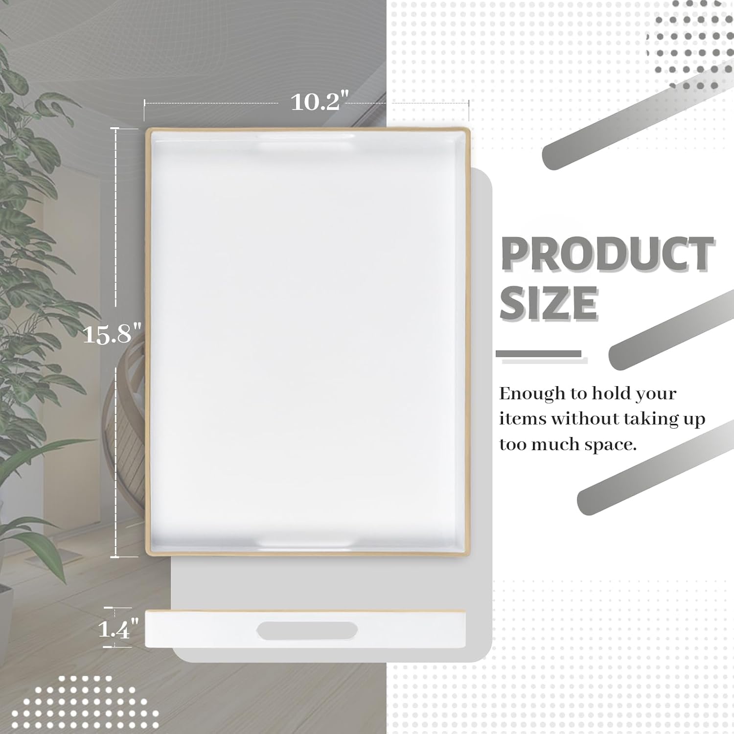 MAONAME White Decorative Tray for Coffee Table, Modern Serving Tray with Handles, Plastic Rectangular Tea Tray for Ottoman, Bathroom Decor, 15.8” X 10.2” x1.4