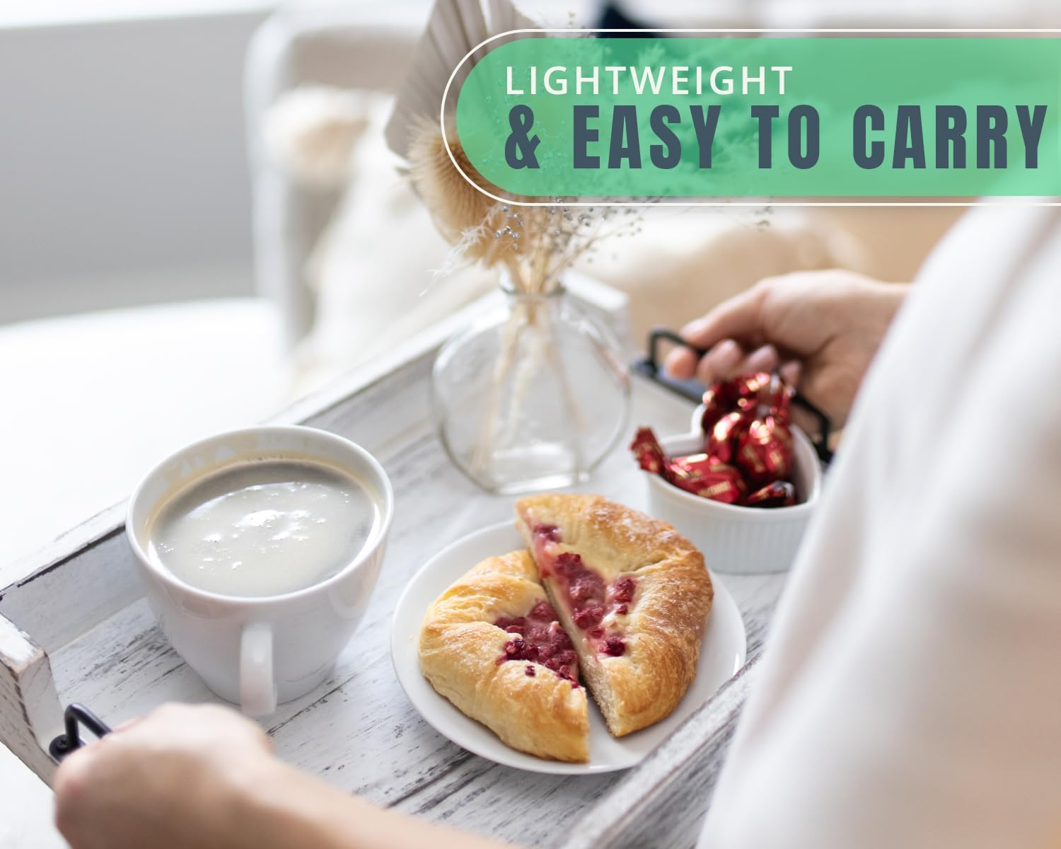Rustic Wooden Serving Trays with Handle - Set of 2 - Large and Small Nesting Multipurpose Trays - for Breakfast, Coffee Table/Butler & More - Rustic White