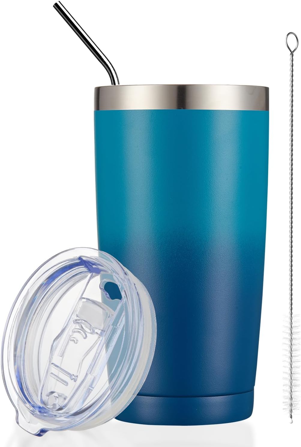 - [Exclusive Bonus Bundle]1*20 oz tumbler with splash-proof slide lid, 1*straw,1*straw brush. The lid is splash-proof and perfect for office, school, trip and picnic. The great value tumbler suit will save your time and money