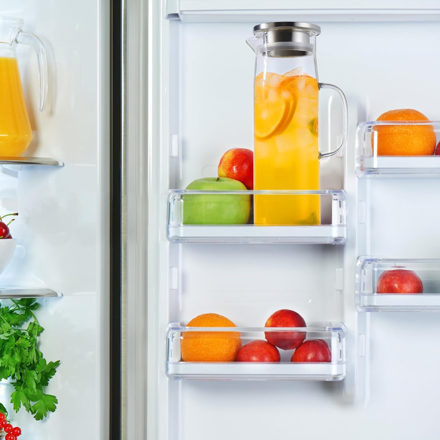 - OCCASIONS FOR USE: The glass fridge door water jugs with lids is widely used, it is suitable for kinds of hot and cold drinks, such as cooled boiled water, iced tea, fruit juice, orange juice, cocktail and other DIY beverages. It's also great for making mulled red wine in the winter. A perfect gifts for parents and friends on birthday, anniversaries, housewarming.