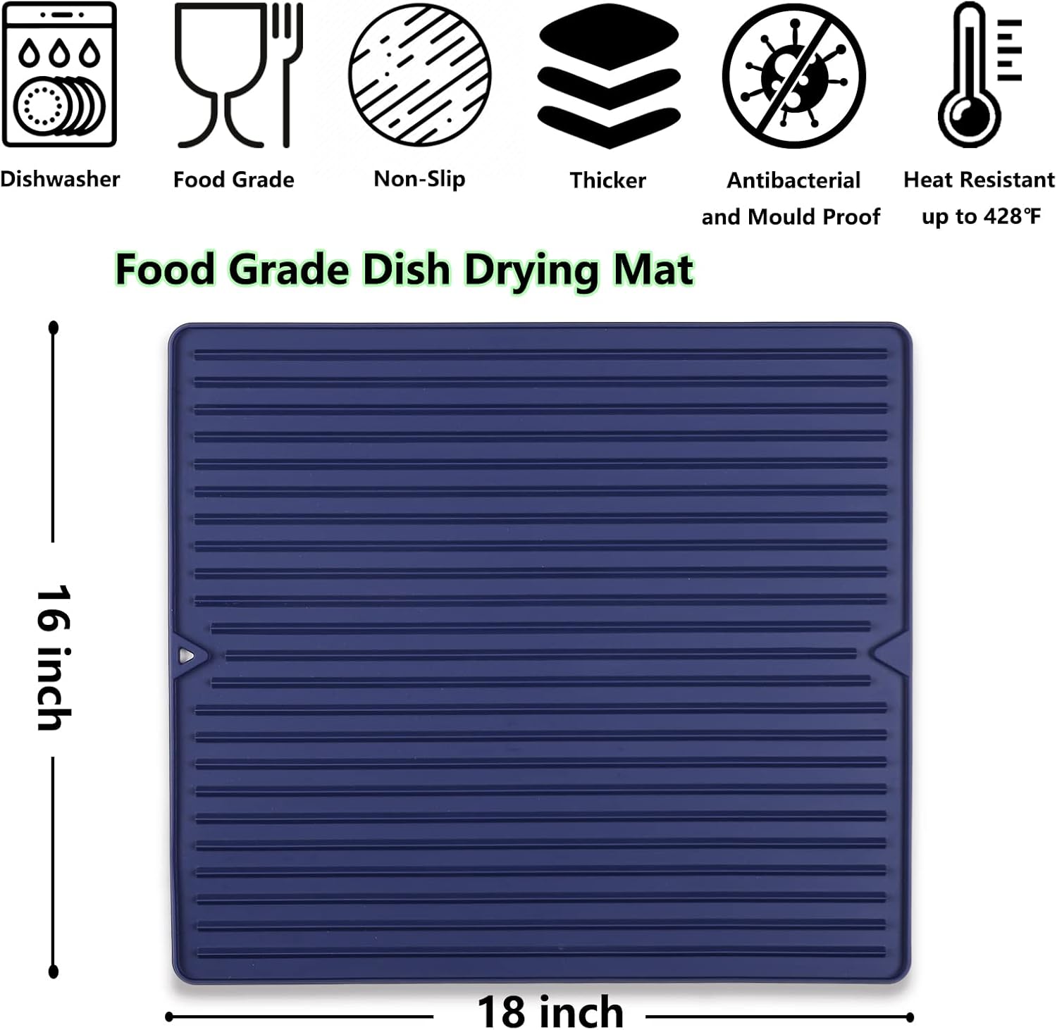 - 【Heat Resistant, Quick Water Releasing & Dry】This extra thicker silicone mat for countertop has straight convex lines design with larger texture drop(0.25in high triangular prism ridge), which makes it heat resistant up to 428°F and consistent with water flow for quick drainage and dry.