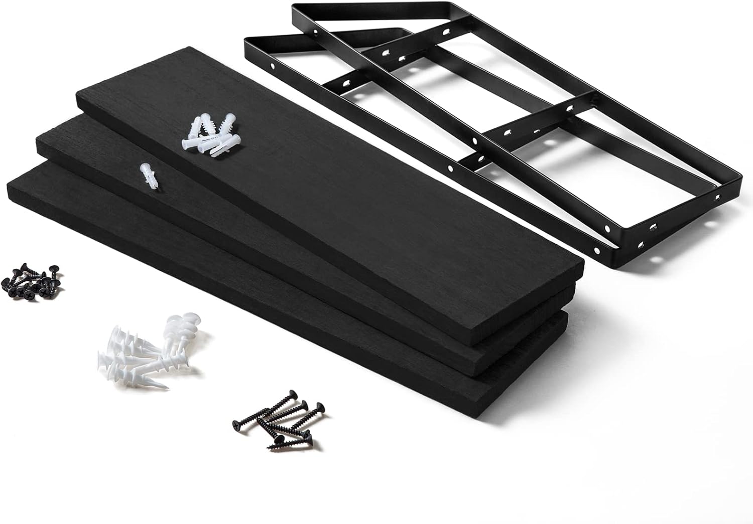 Mkono Floating Wall Shelves 3 Tier Rustic Hanging Shelf with Metal Bracket Wall Mount Wood Storage Display Shelves for Living Room Bathroom Bedroom Kitchen Office,Black