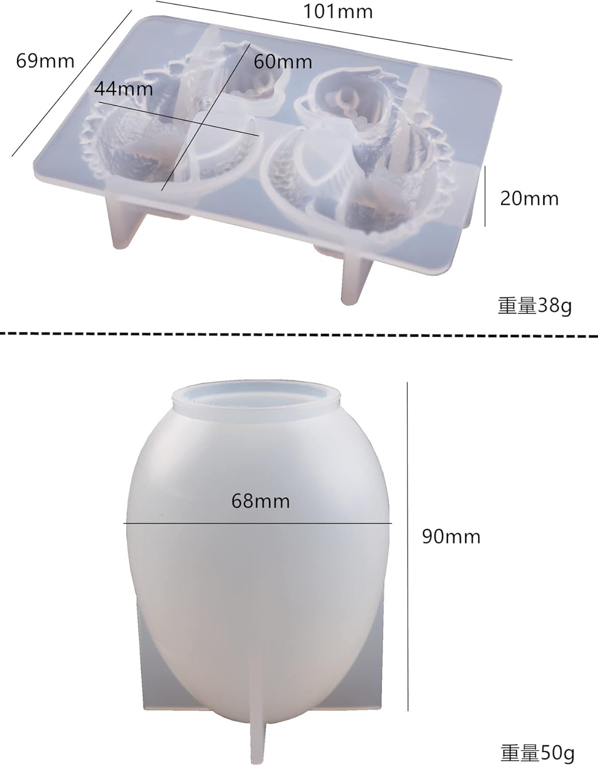 - [Product Size] This Mold include 2 pieces silicone mold, mold size is show in the picture.