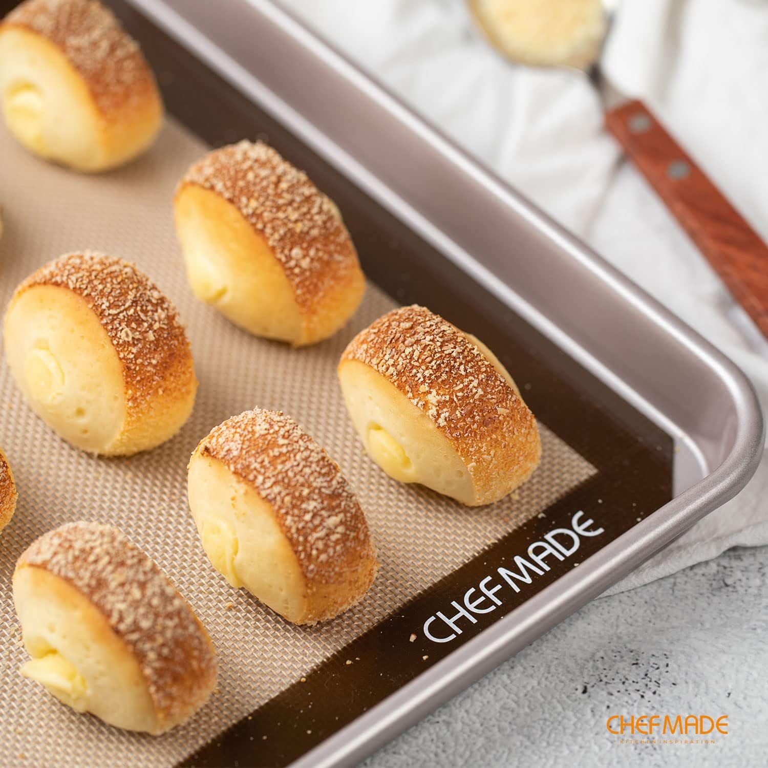 CHEFMADE 17-Inch Silicone Baking Mat with Measurements, Non-stick Heat Resistant Rolling Dough Mat, for Pastry,Pizza, Fondant and Pie Crust Making 11.7" x 16.7" (Brown)